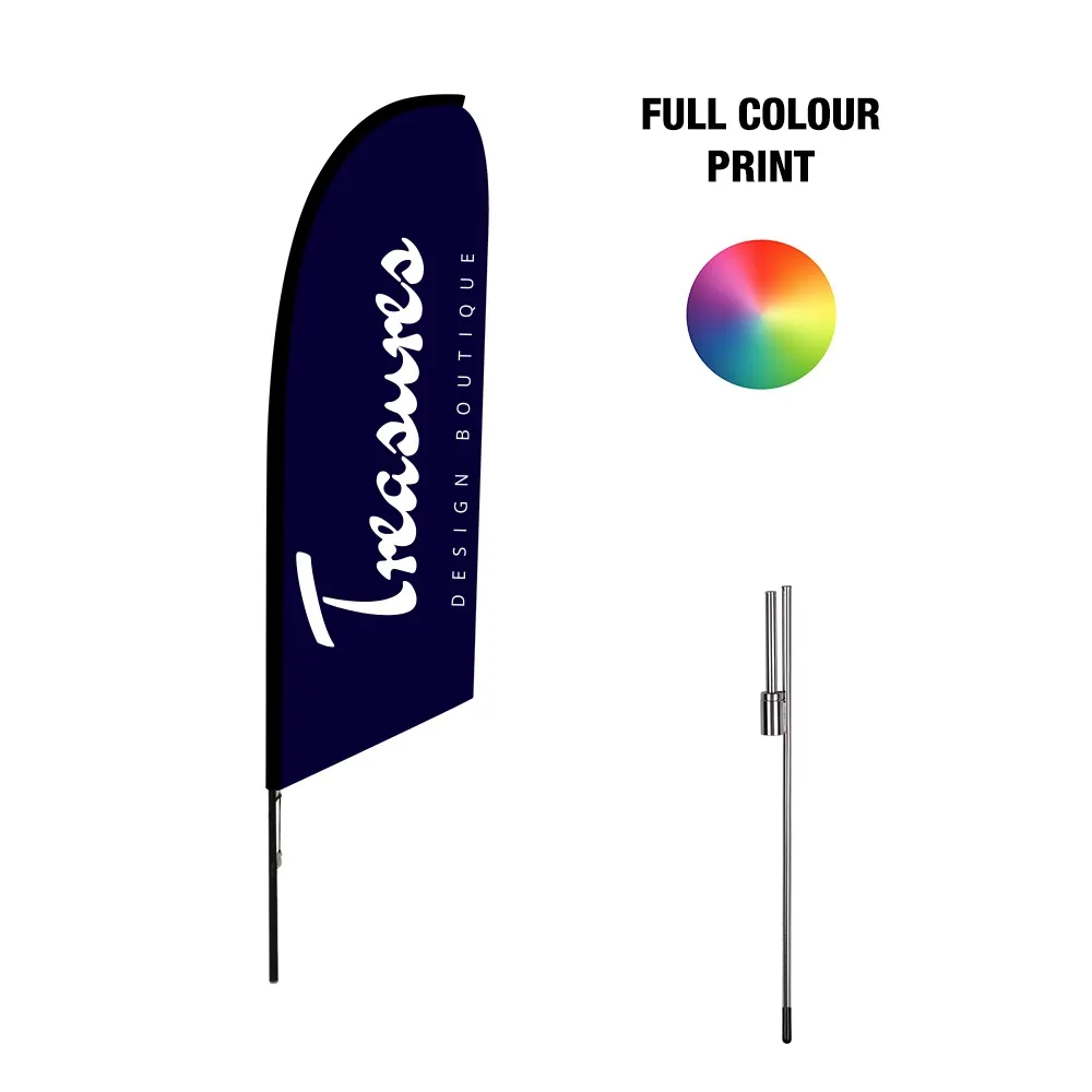 These advertising flags, bow banners use your custom designs to reach out to customers, with the digital printing process offering a true depiction of graphics in full colour to really reach out to customers and get their attention. Set up of these feather flags is easy, with the telescoping fibreglass pole needing no tools for quick assembly!