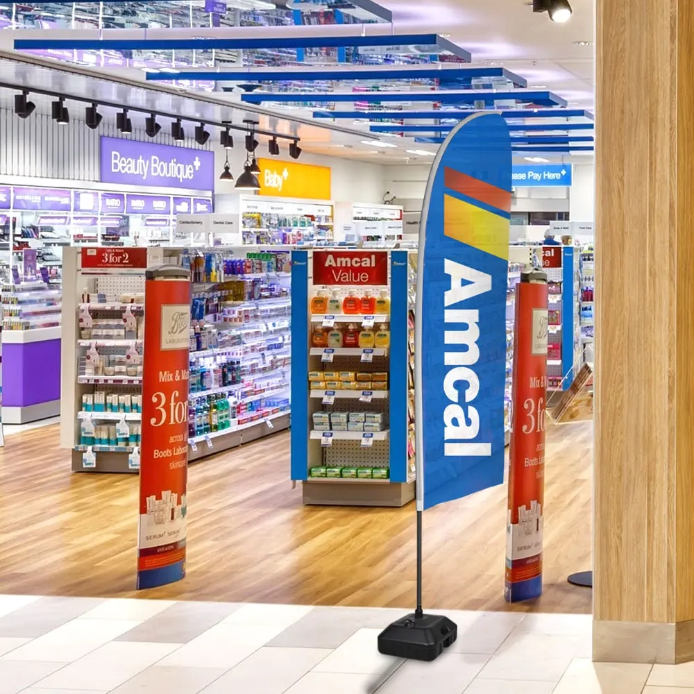 A feather banner helps better reach out to customers, using your custom designs digitally printed onto a woven polyester flag in vivid full colour to really draw attention. The advertising flags have a reverse print on the back of the sign to maximise impact and reach out to more customers. The included collapsible pole is made from fibreglass, requiring no tools for set-up quickly at any location.