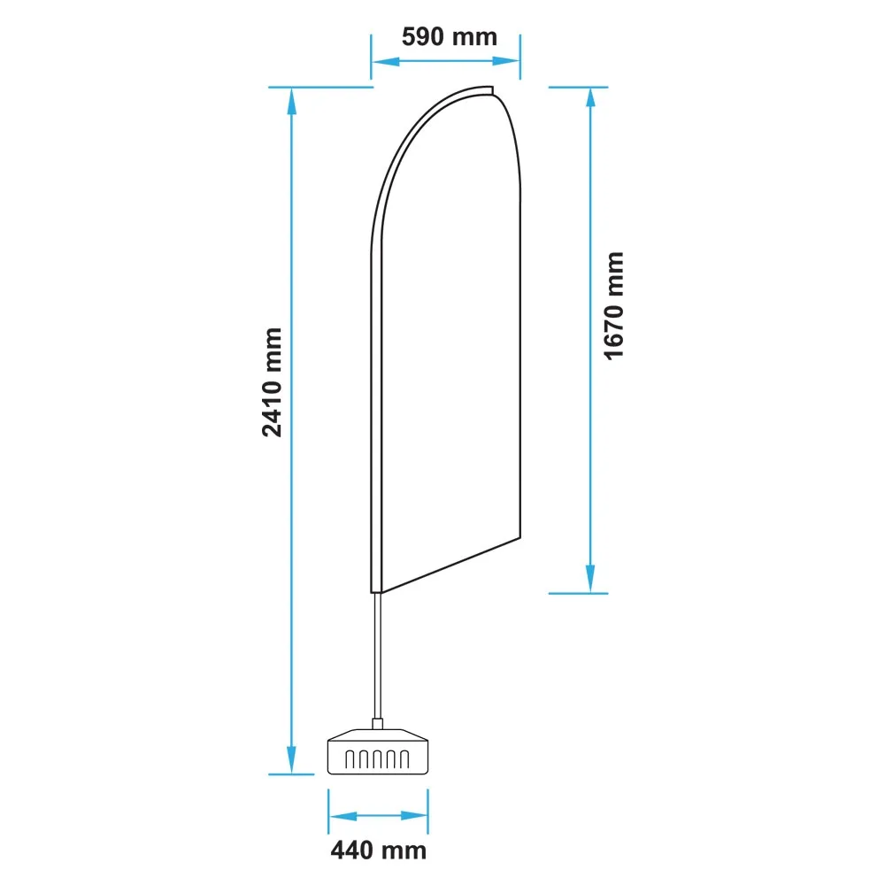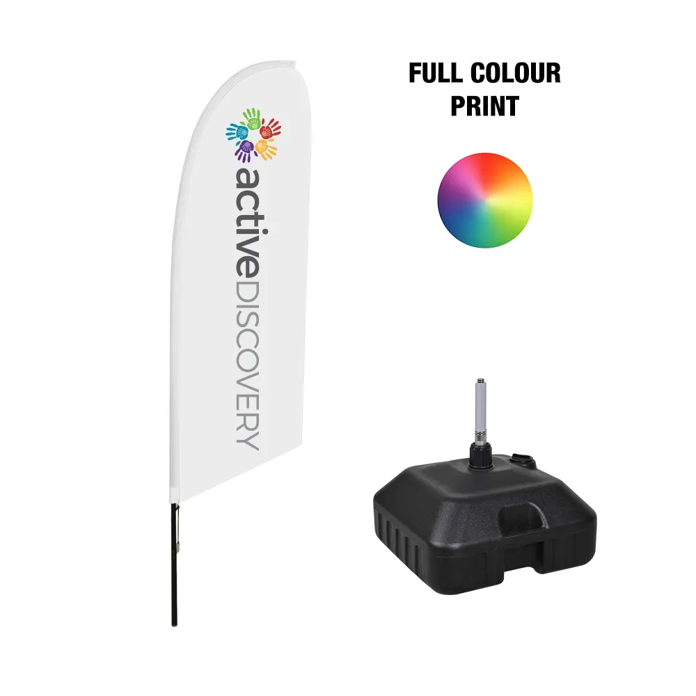 This feather banner is 2.4m tall to be an effective advertising display. These outdoor feather signs have a water base that can be filled with sand or water to weigh down the display and stabilise it for use in different wind conditions. A built-in handle makes it easy to move the flag around. The portable outdoor flags have a nylon carrying bag included to make transporting the kit easy as well as keep it safe during storage.