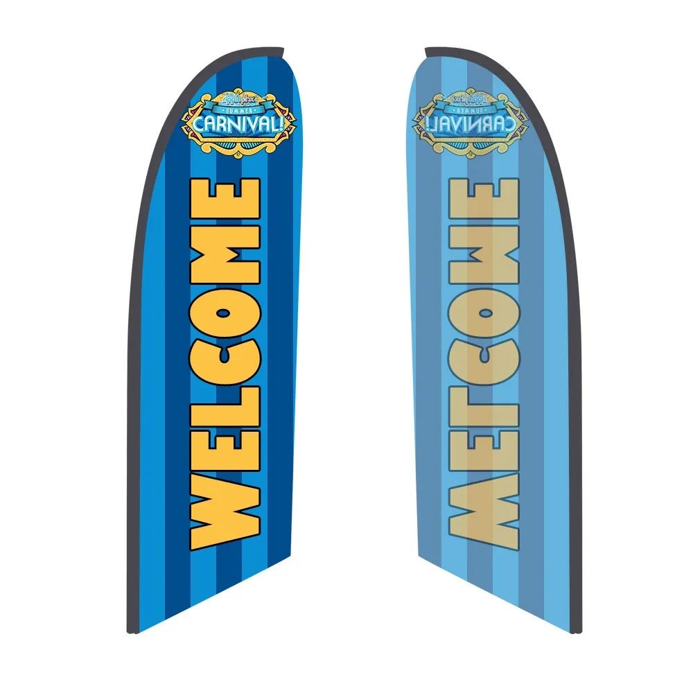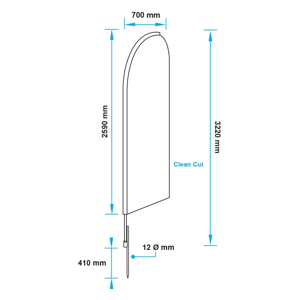 The bow flag uses digital printing to get your custom graphics on the woven polyester fabric. This ensures your designs are shown in full colour for an eye-catching banner that stands 3.3m tall! The portable custom feather bowflag has a carrying bag included for holding all the pieces of the kit and bringing them to and from different events!