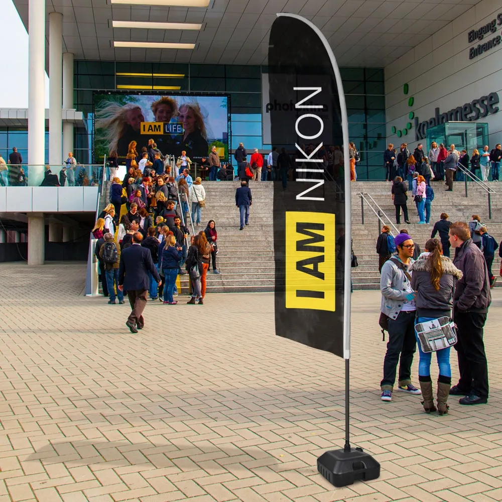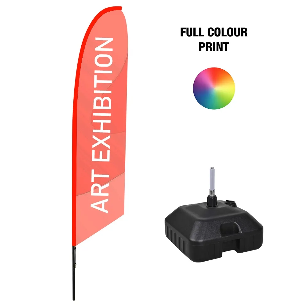 These feather banners are 3.8m tall, a massive flag that can easily be seen by passersby to promote your restaurant, cafe, retail store, travel agency, or booth at outdoor events. Stable advertising flags are ensured by filling the water base with sand or water to help weigh it down and help prevent the display from tipping over in winds. The included nylon carrying bag holds the flag components to make transport between events easy as well as protect the flag in between uses from gathering grime or dust.