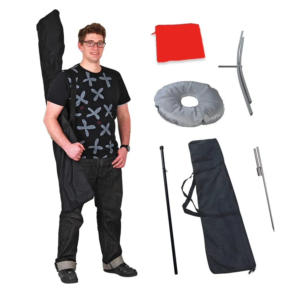 - You also get a free carry bag, ground spike & water bladder to stabilise the flag for outdoor use