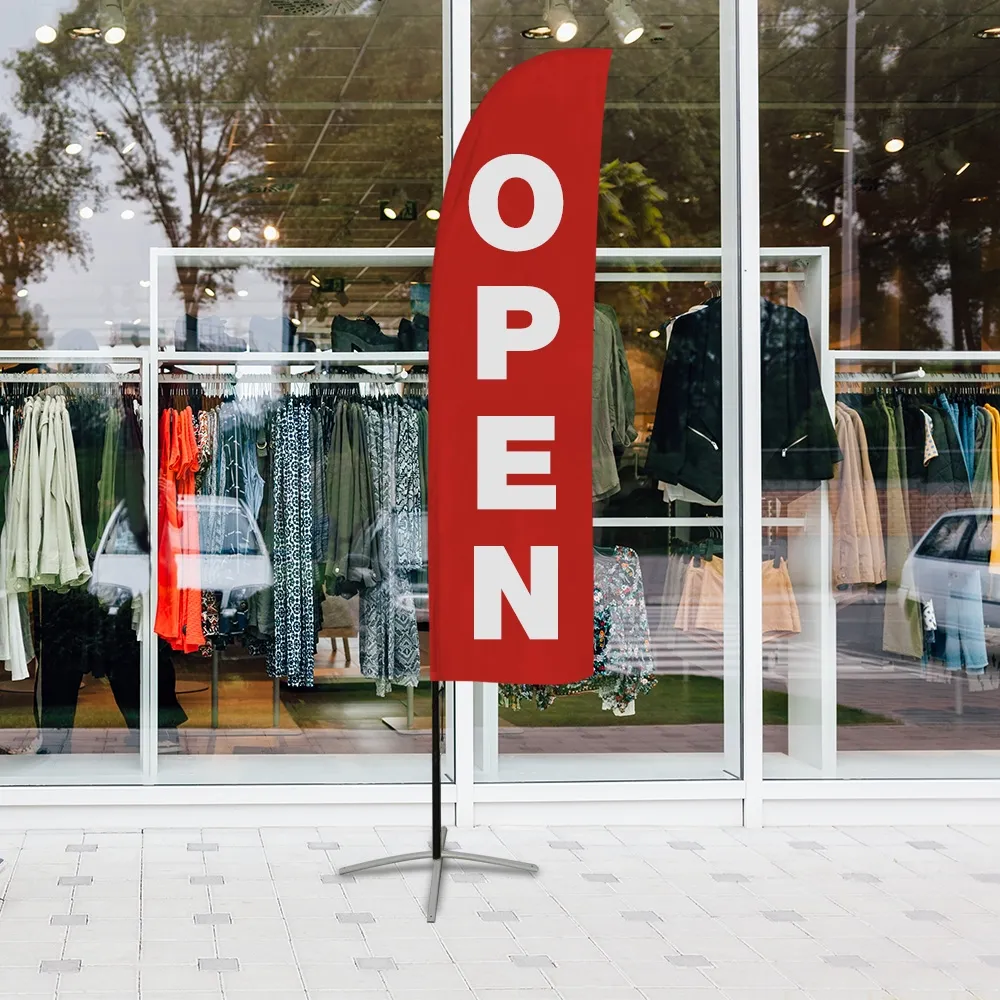 - OPEN flags like this one are a great value means to be seen by as many customers as possible