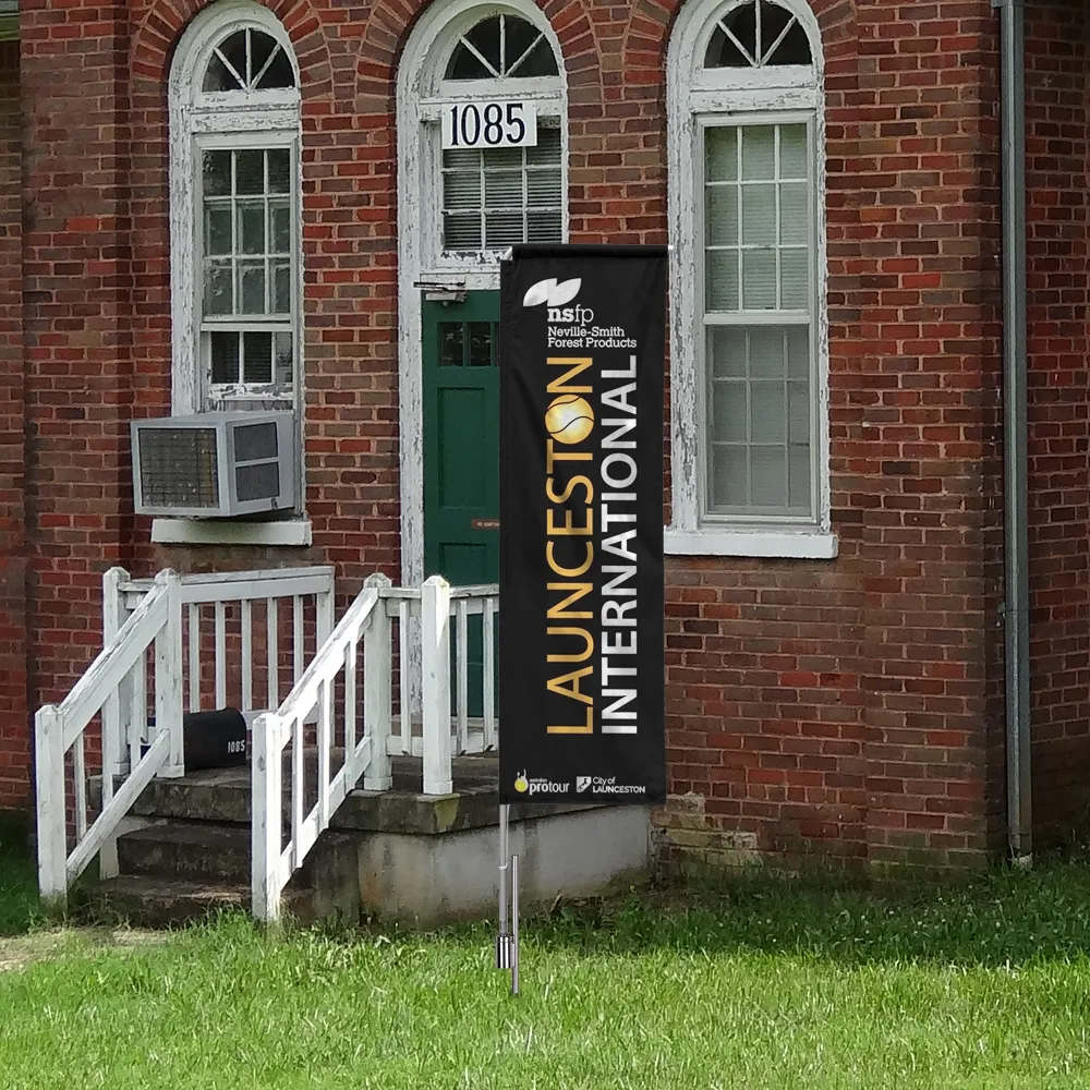 Promotional banners are quick to assemble using the included hardware kit that requires no tools. Buying a single-sided custom flag display gets you a metal pole that holds the rectangle shape displaying your graphics. The portable display has a nylon carrying bag included to easily bring the kit between events. Setting the display up at outdoor events or outside your business is achieved using the included ground spike to hold the advertising flag displays in soft ground.
