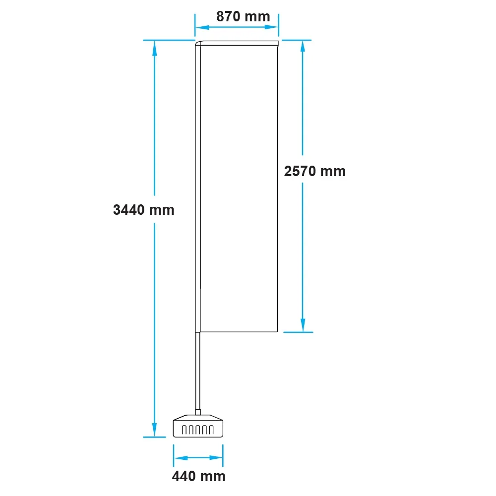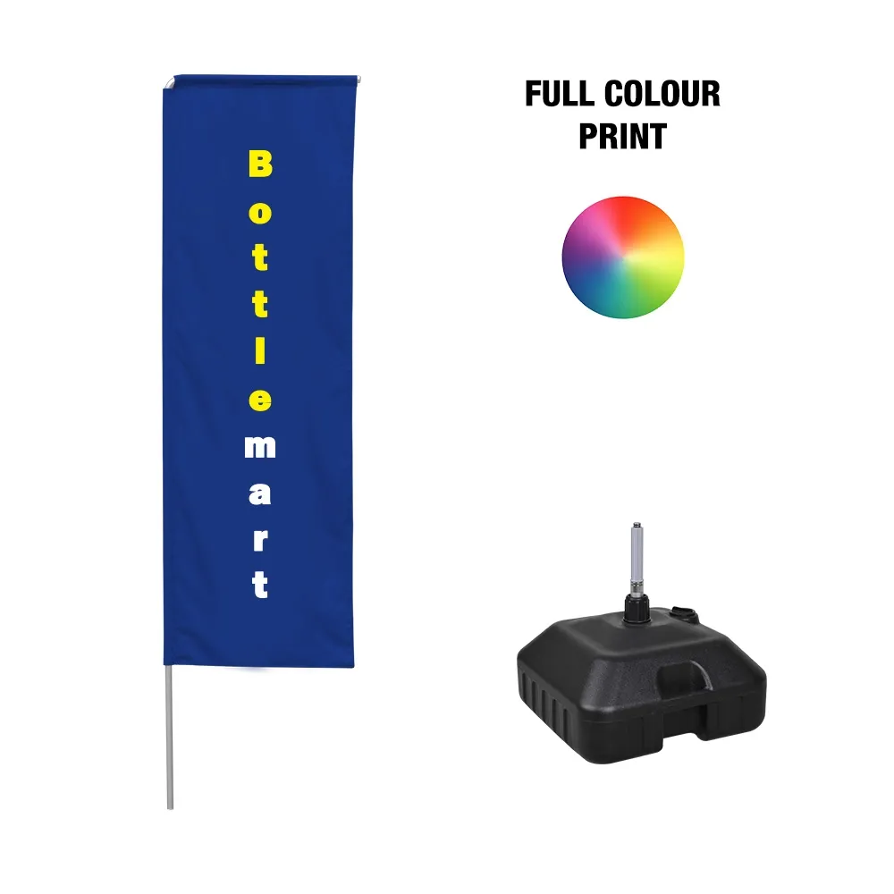 These flying banners are 3.4m tall, providing a highly visible display that helps with the marketing at your retail store, restaurant, cafe, car dealerships, open house, and so many more businesses. The advertising flags have a fillable water base that can be used with sand or water to provide a stable display that will allow the flag to remain in position even in different wind conditions.