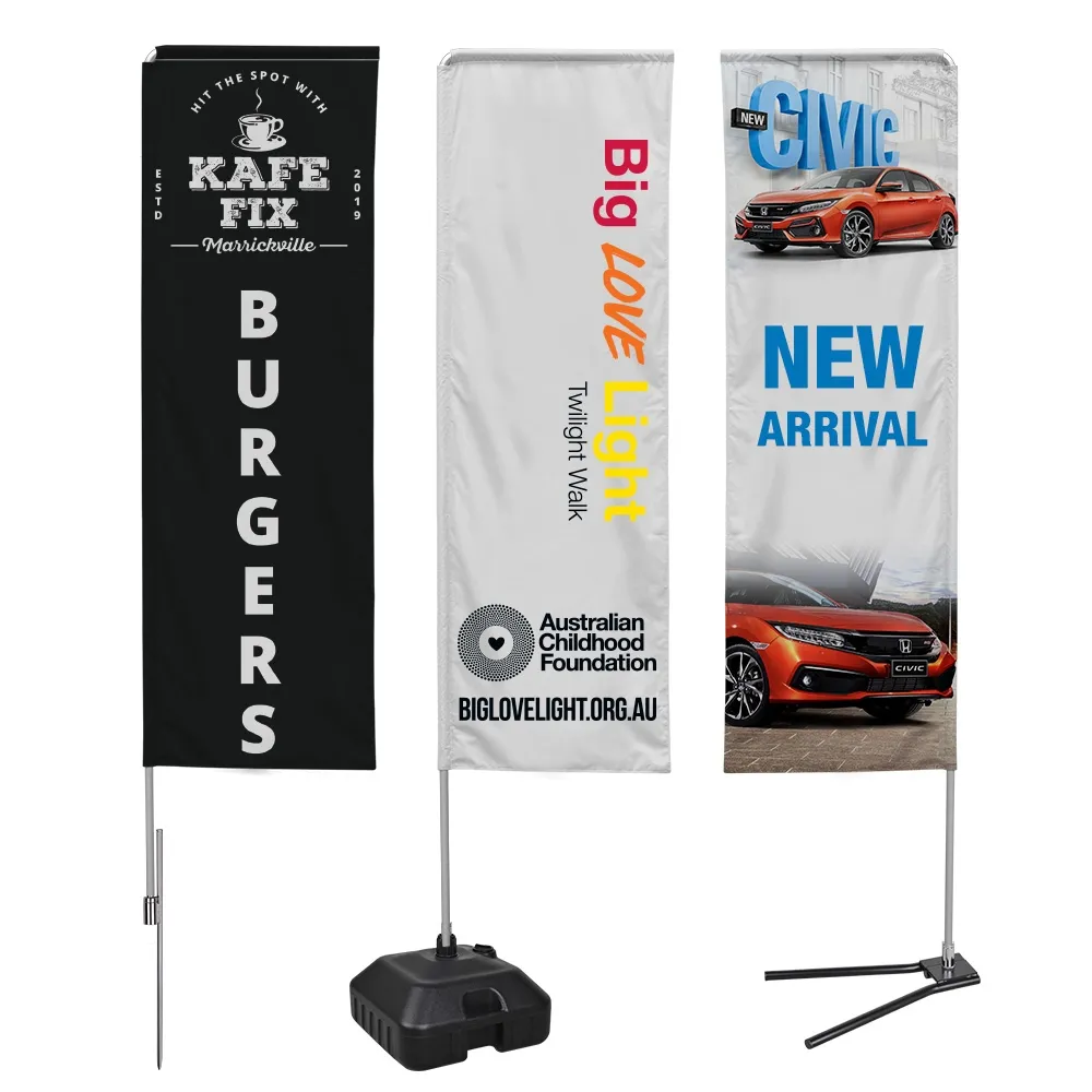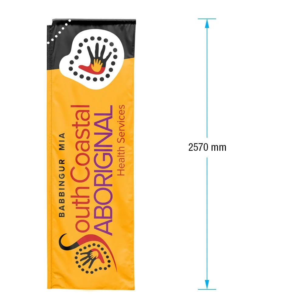 This printed flag is sized to fit 3.1m tall rectangular banner kits, compatible with any size base that includes a metal flagpole that can support these dual-sided flags. Graphics are digitally printed onto the fabric using a dye-sublimation process, offering rich colours and vivid imagery that is less prone to fading over time. Printing is done onto two individual flags that are then sewn together to create a 2-sided banner with the same imagery on both sides. The flags are made from woven polyester fabric for durability, allowing for both indoor and outdoor use without issue. A reinforced channel is sewn into the side to place the flagpole during assembly. If you need design assistance, consult with our in-house staff of experts who offer three tiers of help to meet differing needs. Slimline Warehouse provides quick shipping to anywhere in Australia, buy online today!