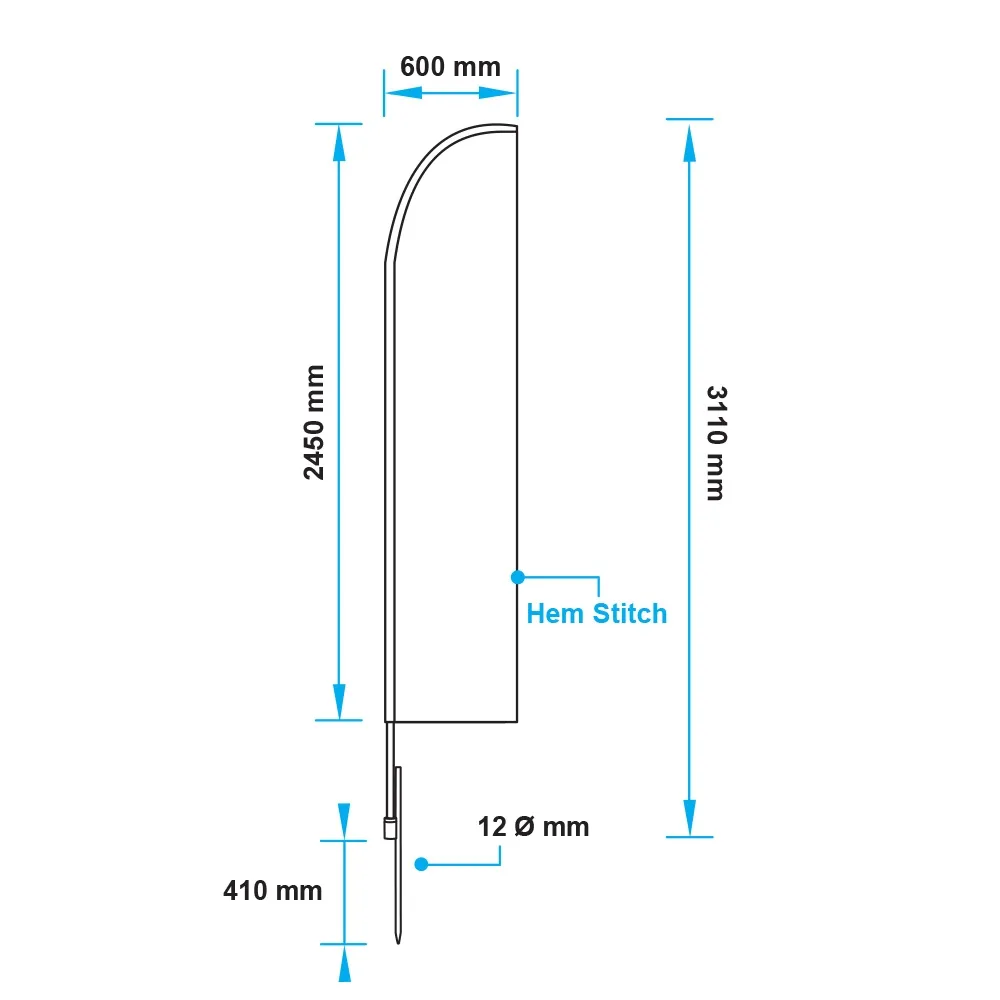 - 3.1m banner features a spike for securely holding the flag in soft ground