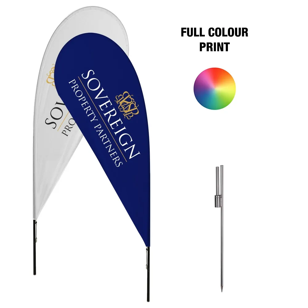 • Tear drop flag banner has custom graphics digitally printed in full colour for stunning imagery