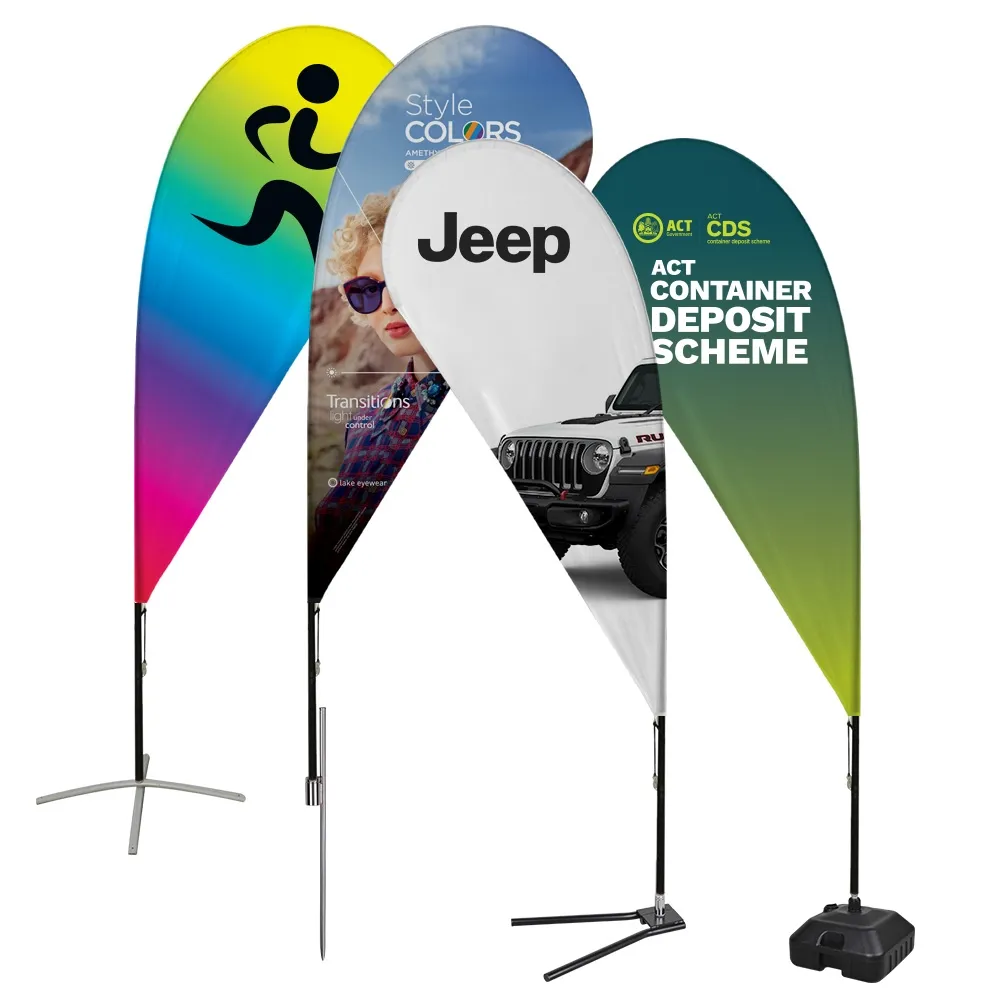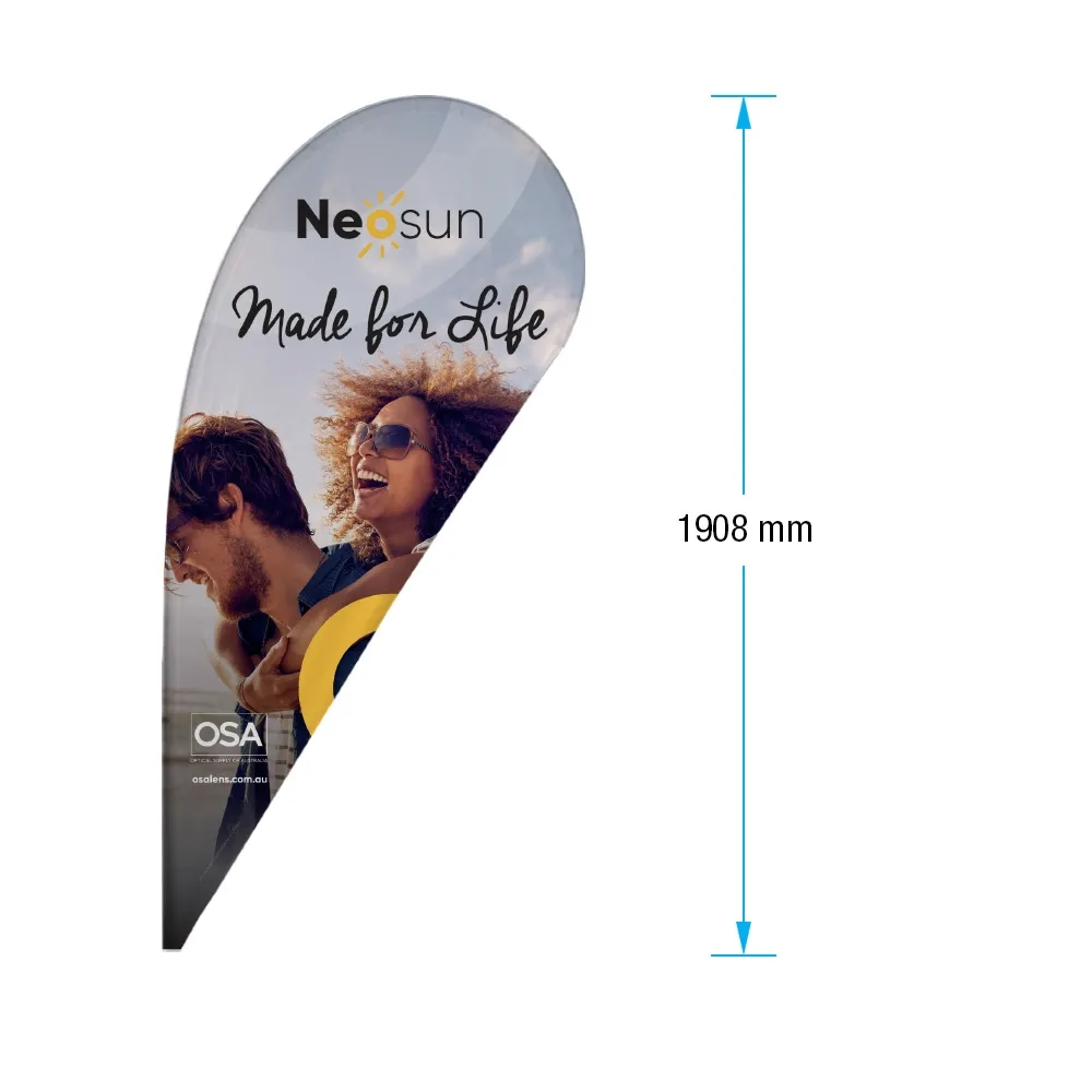 Use this dual-sided flag outside of your exhibition booth or business to help create awareness and promote your goods! This additional banner is sized for 2.5m tall teardrop banner kits and has printing on both sides to maximise view from a single stand by offering visibility in multiple directions at once. Using a dye-sublimation process, your designs are digitally printed directly onto the fabric for rich colours and vivid imagery that are less likely to fade over time. Two flags are actually individually printed and then sewn together to create the 2-sided banner, resulting in a stronger banner that is perfect for indoor or outdoor use. The woven polyester fabric holds up well to regular use and has a reinforced channel sewn in to hold the metal flagpole securely. If you are in need of design assistance, our in-house team of experts is available with three tiers of help to work with differing needs. Buy online today for quick shipping to anywhere in Australia, only from Slimline Warehouse!
