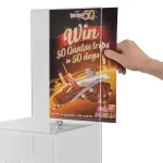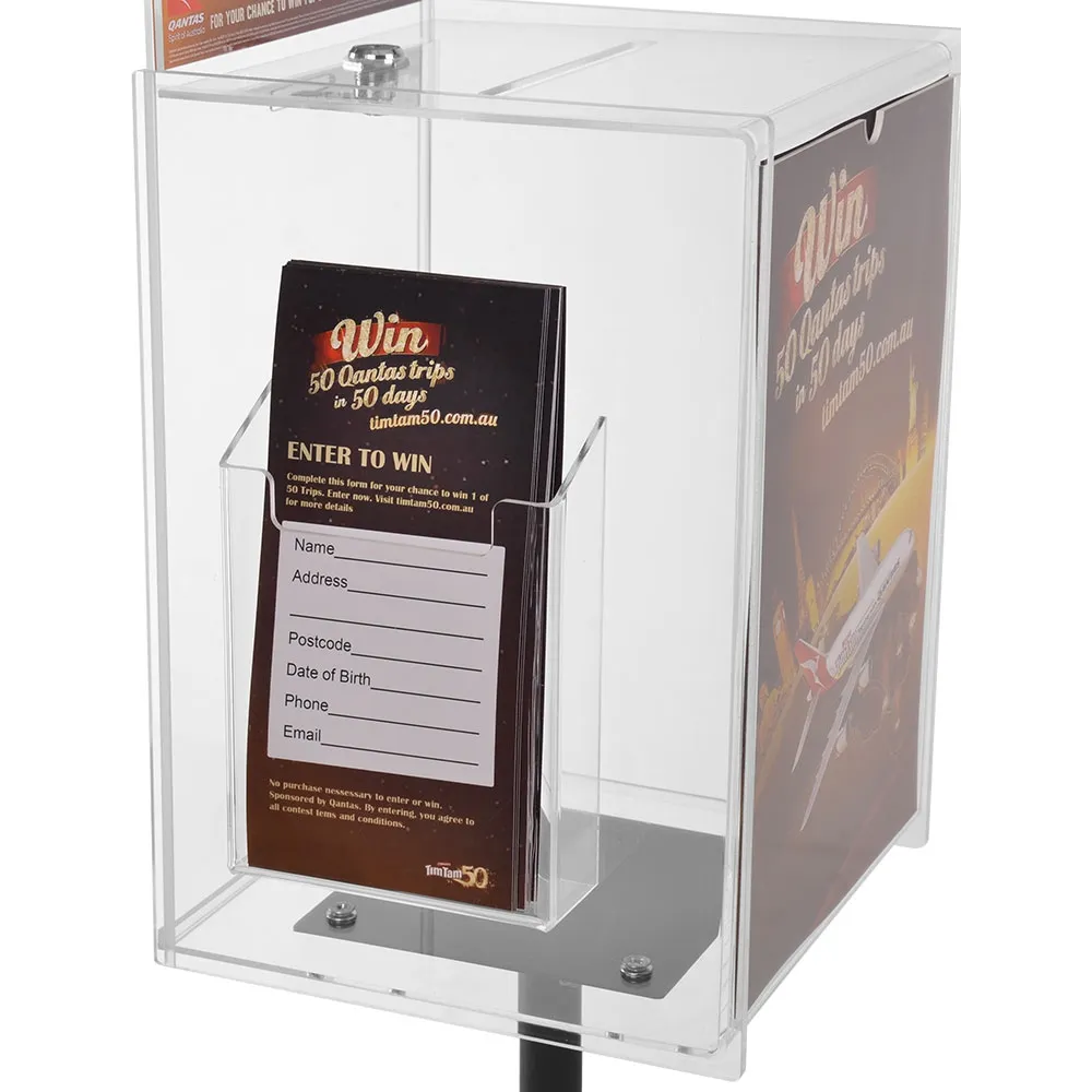 These comment boxes with lock help you gather suggestions from employees or patrons easily! The floor standing display is 1580mm tall, the perfect height to be seen by visitors whilst still easily accessible for all. The floor standing donation box has a 150 x 10mm slot in the top that easily accept various sizes of comment cards, donation envelopes, money, and more. Whether for charity events or in a retail store, this display is perfect for gathering donations or suggestions.