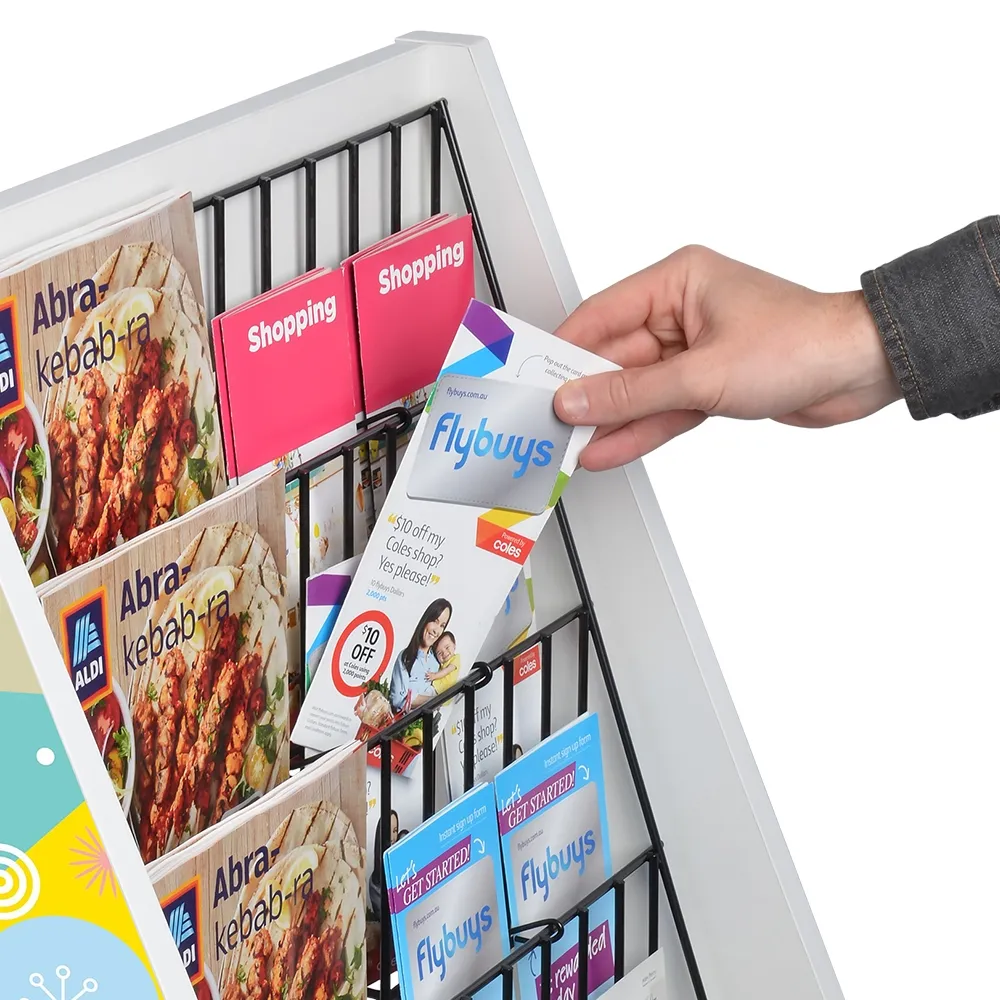 This literature floor display rack has 6-tiers to offer heaps of of brochures for visitors to browse. The magazine and brochure display holder has adjustable pockets that are able to accommodate from DL (99 x 210mm) to A4 (210 x 297mm) standard sized brochures at each together, to best fit your necessary set-up. This allows you to have a range of items on display at once for visitors at museums, gift shops, information centres, transport hubs, travel agencies, hotels, and more. When displaying loose A4 leaflets, it is recommended to use at least 320gsm to prevent unwanted flopping. The tiered design with minimal wire pockets also shows most of the cover of each pamphlet for easy browsing.