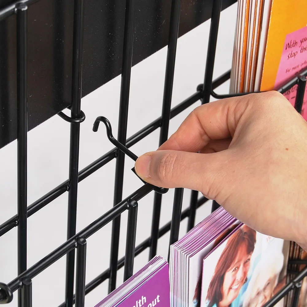 The magazine display has been designed to hold (18) x A4 (210 x 297mm), (27) x A5 (148 x 210mm) or (45) x DL (210 x 99mm) catalogues, magazines, and brochures within the stand. For loose A4 flyers, we recommend using pamphlets that are at least 380gsm thick to prevent the literature flopping over. The versatile display allows you to hold a variety of sizes in each row in order to best accommodate the needs of your business!