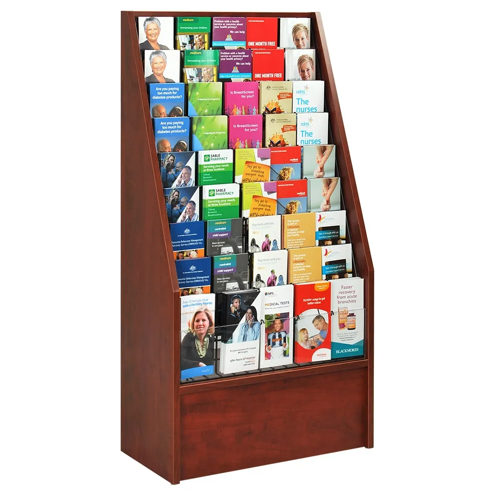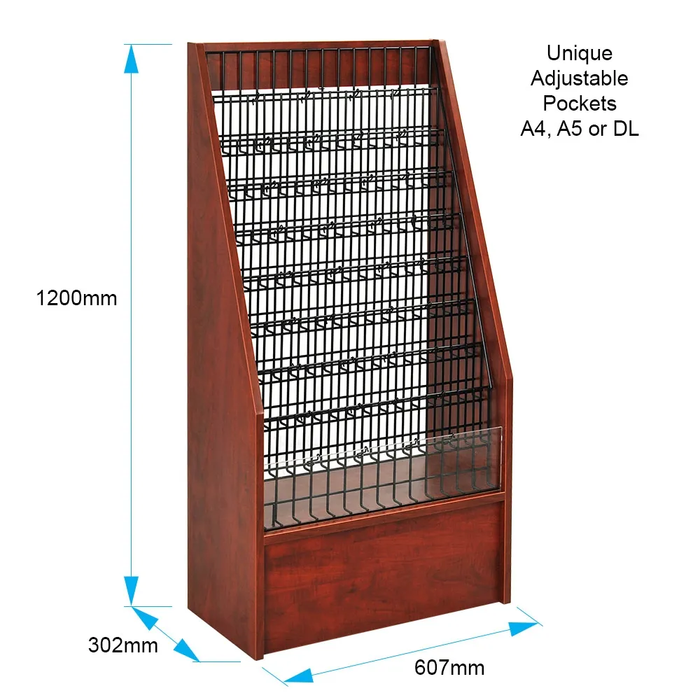 The wood literature stands are commonplace in many different businesses, with our style of high-capacity stand also sold at a low price that makes it work for any budget. Buy this display today for use at your retail store, transit station, newsagent, museum, community centre, university, welcome centre, car dealership, art gallery or travel agency!