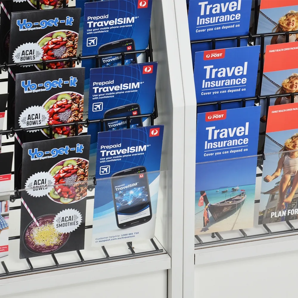 - Adjustable wire pockets designed for DL (99 x 210mm) & A4 (210 x 297mm) flyers