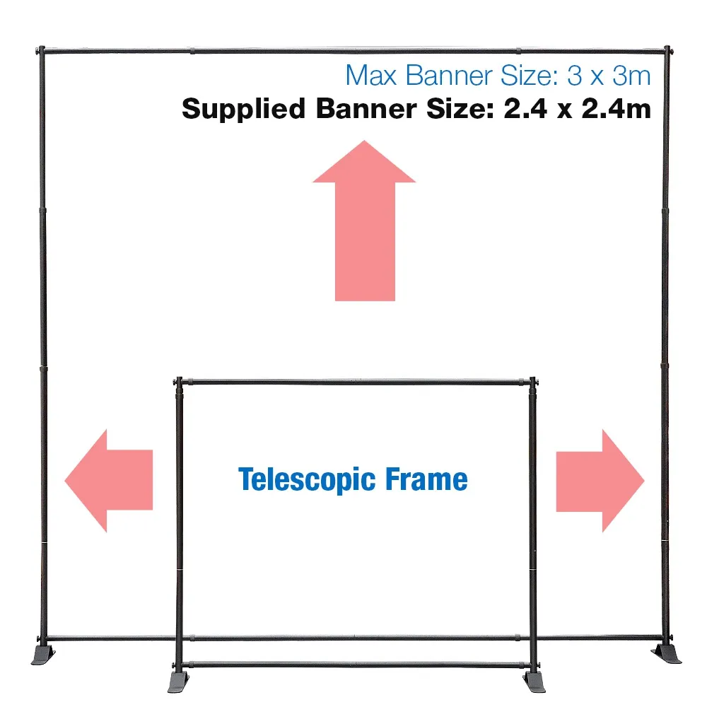 • Telescopic poles allow banners to be used between 1.9 x 1.6m & 3.3 x 3.3m frame