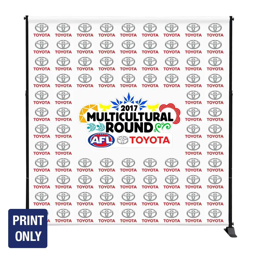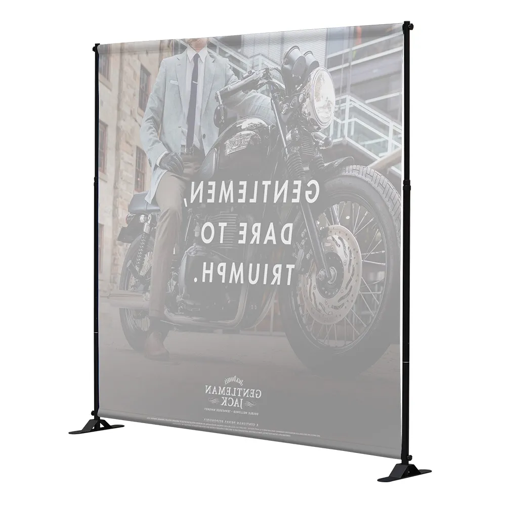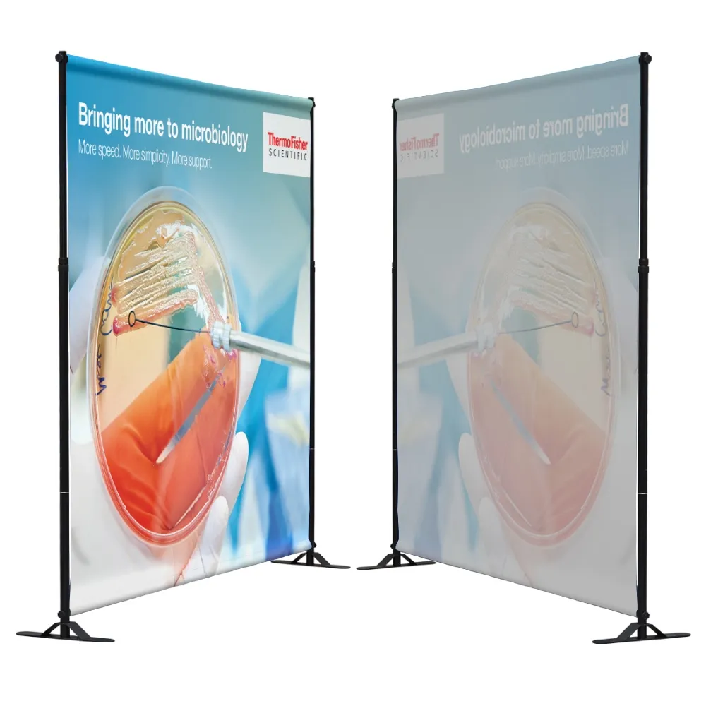 - Fabric print is hung between two telescopic poles that ensure graphic is taut & visible