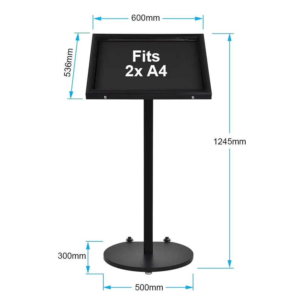 - Designed to display (2) A4 (210 x 297mm) or a single A3 (297 x 420mm) graphics