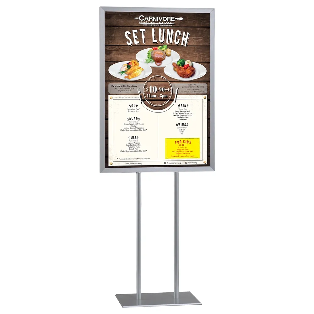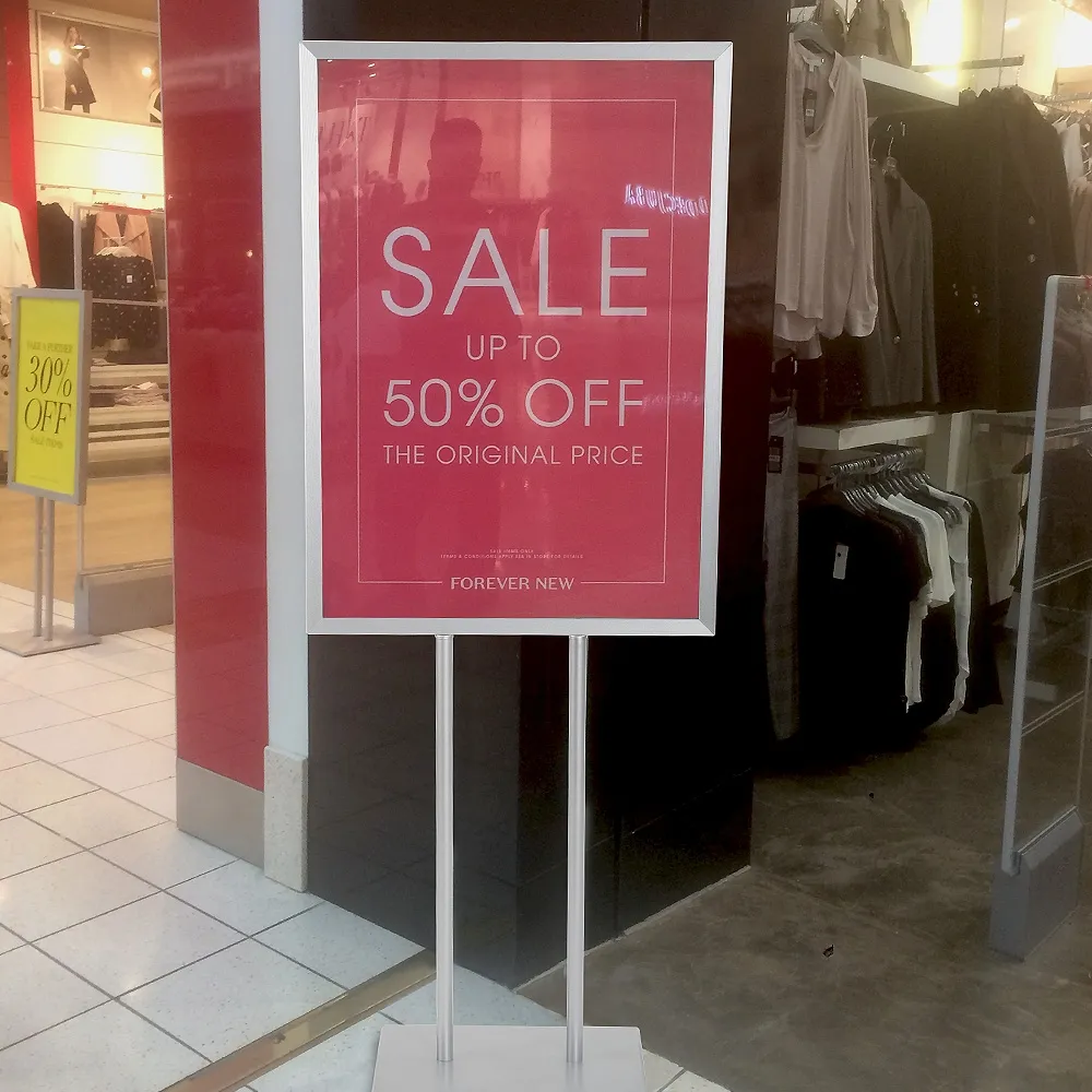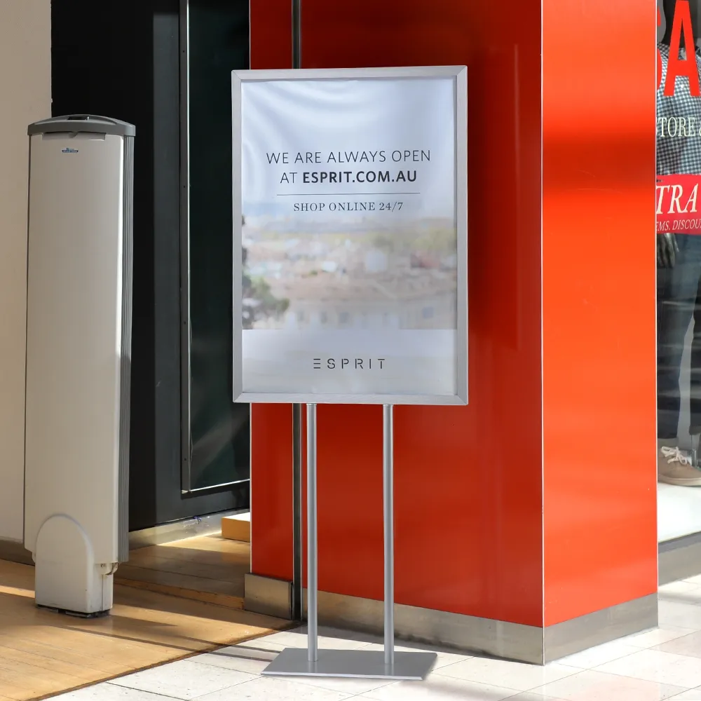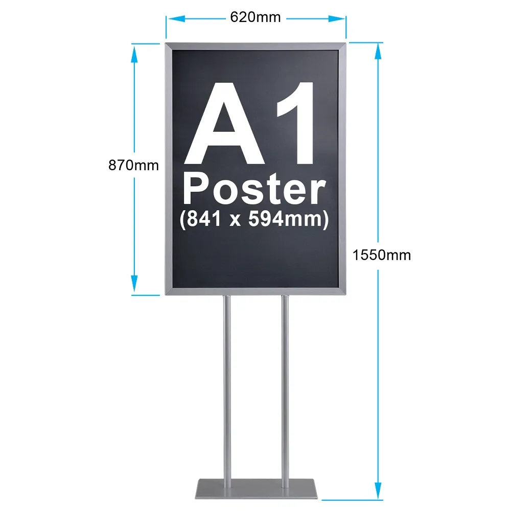This budget A1 floor sign poster stand is a cheap way to display advertising, menus, directories or any type of sign. The dual supports of the aluminium stand ensure a robust and stable presentation and display your posters clearly to passing shoppers.