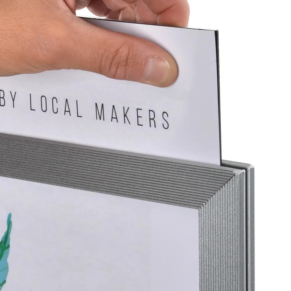 The poster frame of the stand has a slot in the top edge into which A1 posters are simply dropped or removed. This means that changing the posters in your floor stand is quick and easy. Our poster stand signs also include a glare resistant plastic lens to protect your graphics and prevent them from fading.