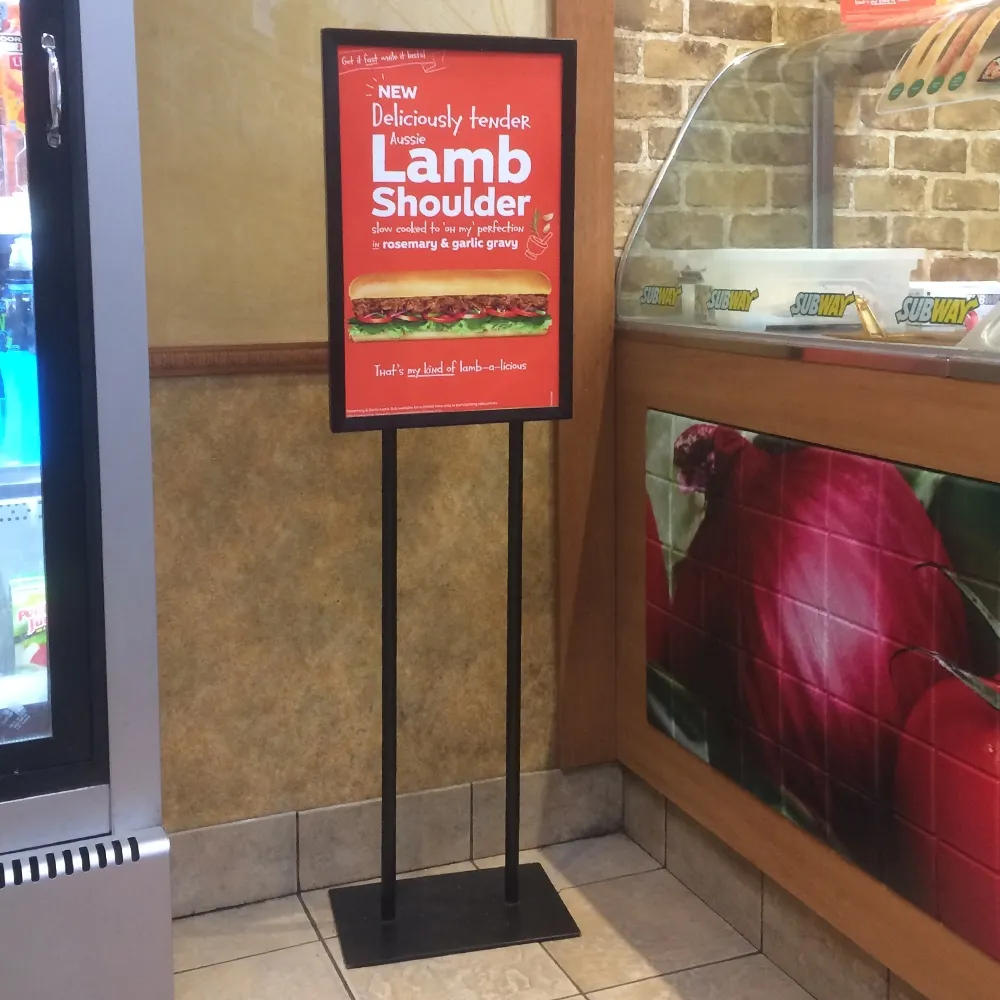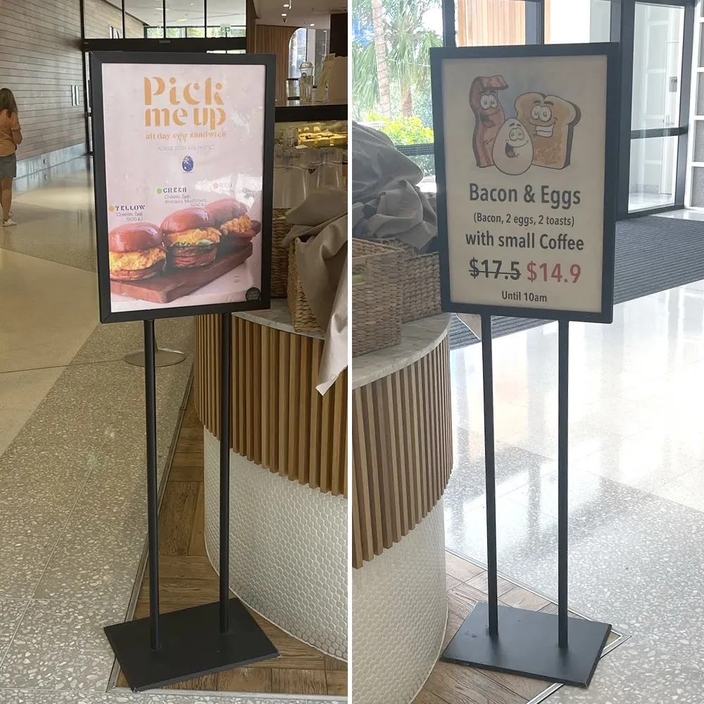 - Double sided free standing poster display