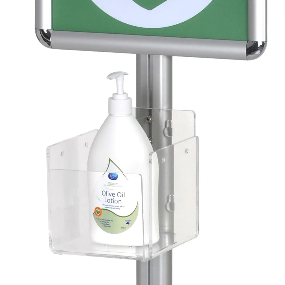 This free standing hand sanitiser dispenser helps your location to provide hand sanitising formula to visitors and employees to help prevent the spread of diseases including coronavirus. The fixture includes an open acrylic holder that is 138 x 154mm to easily support wide range of brands and sizes of anti-bacterial wipes and gels. Made from 5mm thick perspex, this container provides full view of contents to make it easy to know when refilling or replacement is needed! This container is perfect for holding different brands and sizes of anti-bacterial wipes in addition to other products or sanitising gels.