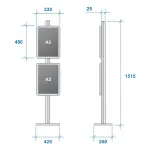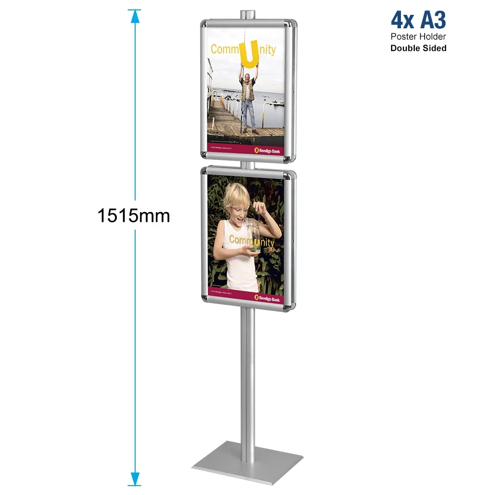 - Ad stands use (4) snap frames to display A3 (297 x 420mm) posters in landscape or portrait format