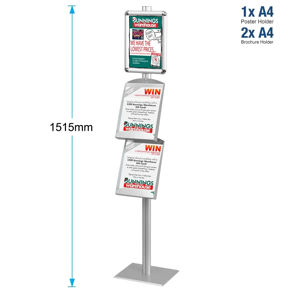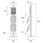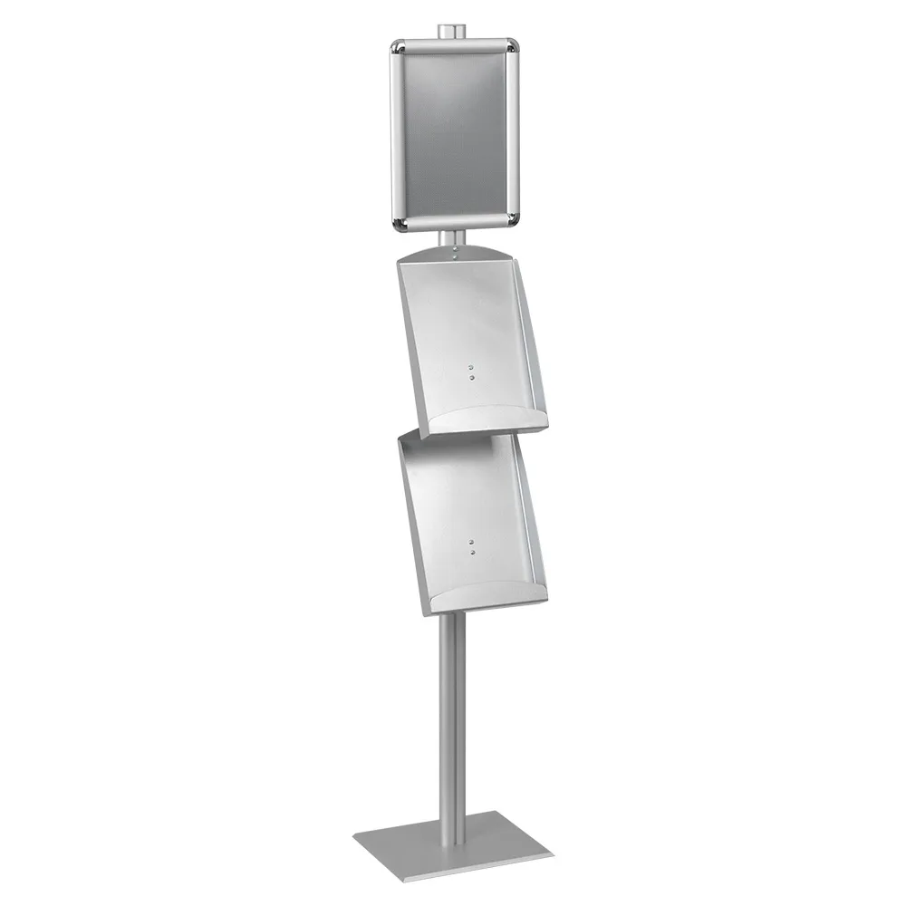 The exhibition brochure stands are a great way to advertise your business products. The magazine racks are used in trade shows, restaurants, bars, retail stores, & information centres. The exhibition brochure stands feature (2) A3 brochure holders that mount onto the centre pole. These brochure holders are movable up & down the pole to allow customers to set them up the way they want. This magazine racks, exhibition brochure stands are modular, allowing additional components from our line of accessories to be added as well. That allows customers to create the exact display their business requires! These lightweight exhibition brochure stands are easily movable within your business, but still stable due to the plate steel within the base.