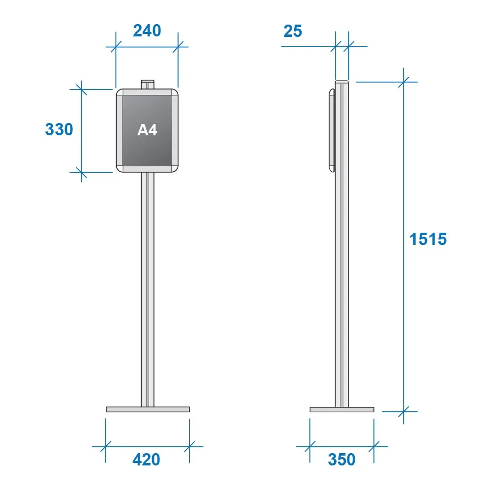 - Modular display holds (2) A4 (210 x 297mm) graphics in portrait or landscape orientation