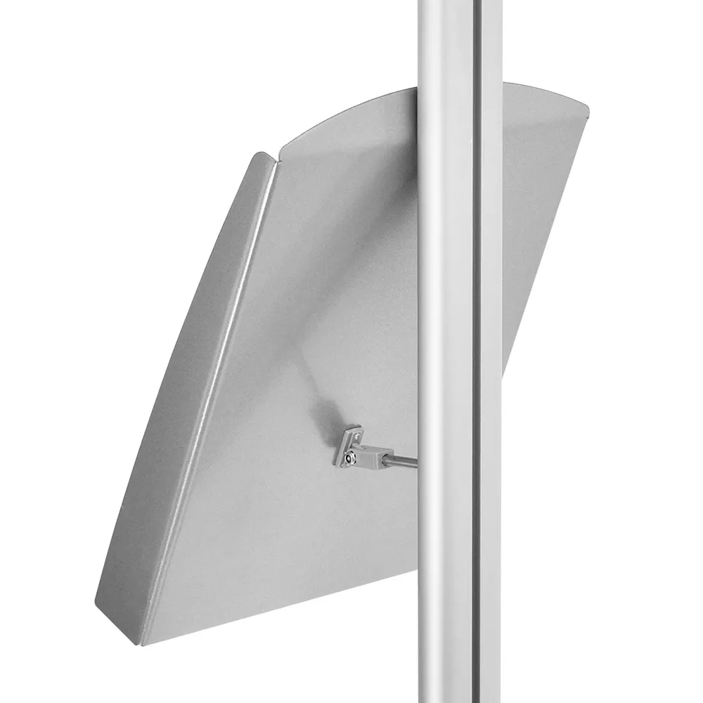 This A4 information stand is a useful display at exhibition halls, casinos, retail stores, restaurants, cafes, shopping centres, hotels, and more to provide take away information to visitors. The included literature pocket can display A4 (210 x 297mm) standard sized flyers in portrait orientation, perfect for catalogues and leaflets to be displayed. The pocket is angled to present materials nicely, with a raised front edge to keep items from falling off. This holder can be adjusted anywhere along the centre pole of the display to be easily accessible by your clientele.
