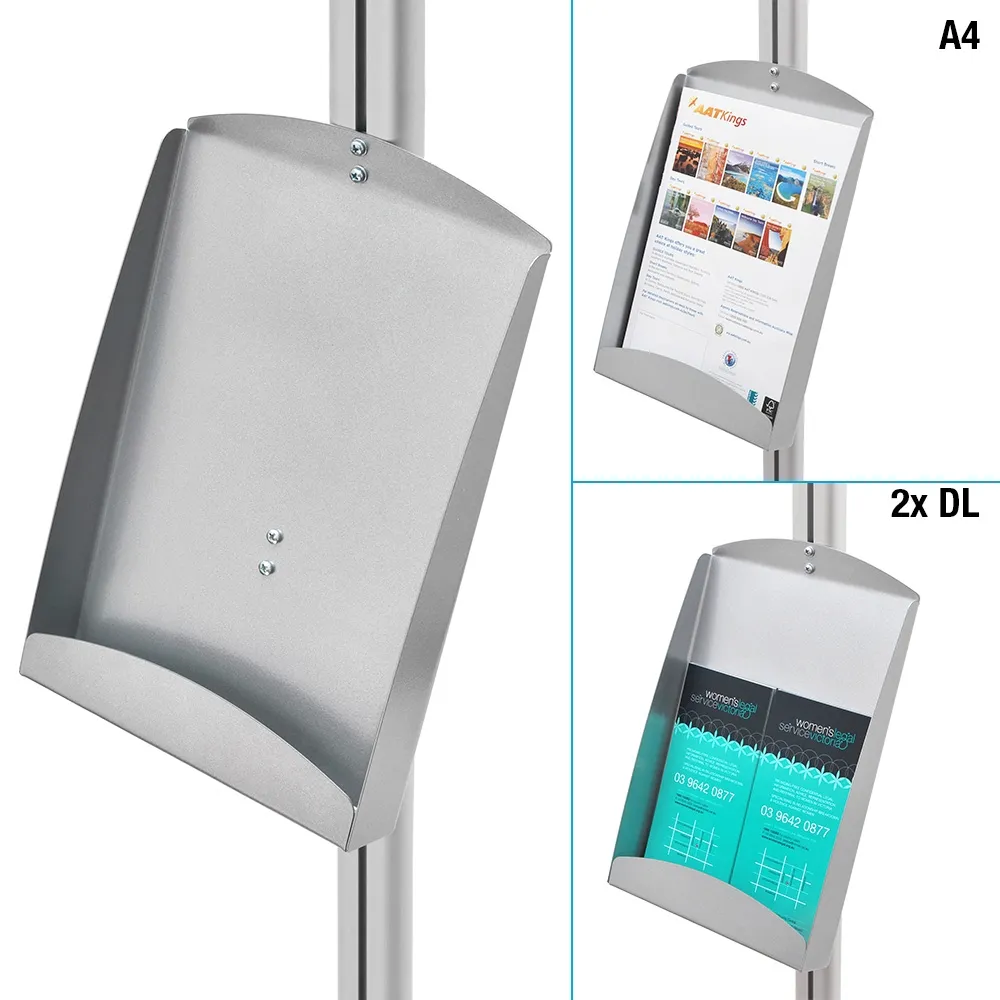 The modular design of these stands allows for placement of components anywhere along either side of centre pole. There are additional accessories, including shelving and other sizes of brochure pockets and poster holders, available to choose from for full customisation. The silver aluminium build offers a lightweight display that fits in well with different styles of décor. The round base has a 370mm diameter footprint to minimise impact to other displays or footpaths. Order today by 3pm AEST to receive same day shipping to anywhere in Australia with this and most other in stock products, only from Slimline Warehouse!