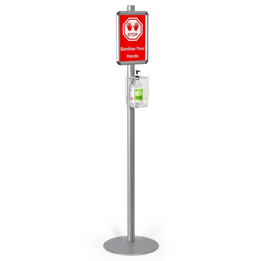 - Free standing hand sanitizer dispenser includes A4 (210 x 297mm) poster clip frame