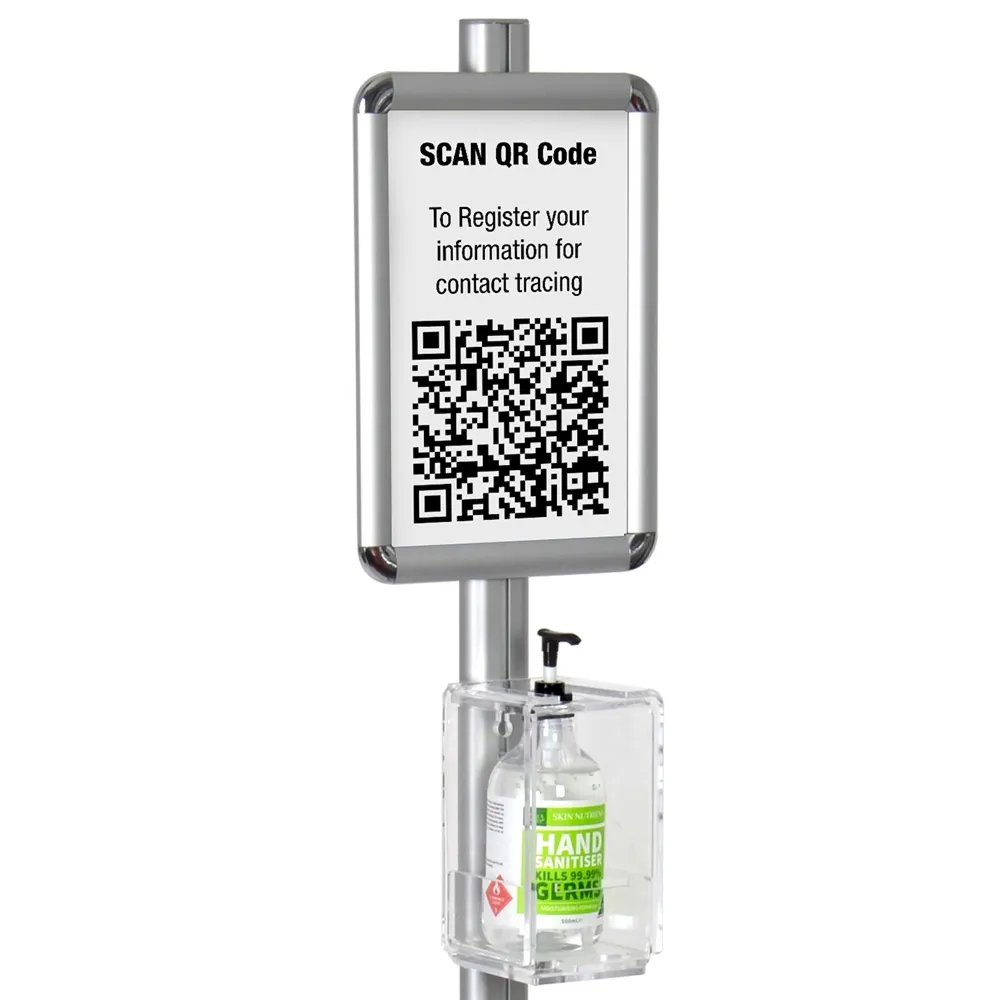 This free standing hand sanitizer dispenser, part of our line of pandemic supplies, also uses an A4 (210 x 297mm) clip frame that holds standard sizes posters in portrait orientation. An anti-glare lens is also provided that both keeps the displayed posters clean whilst also improving readability. The entire display has a modular design to allow components to be placed where desired, with additional accessories also available to fully customise this fixture!