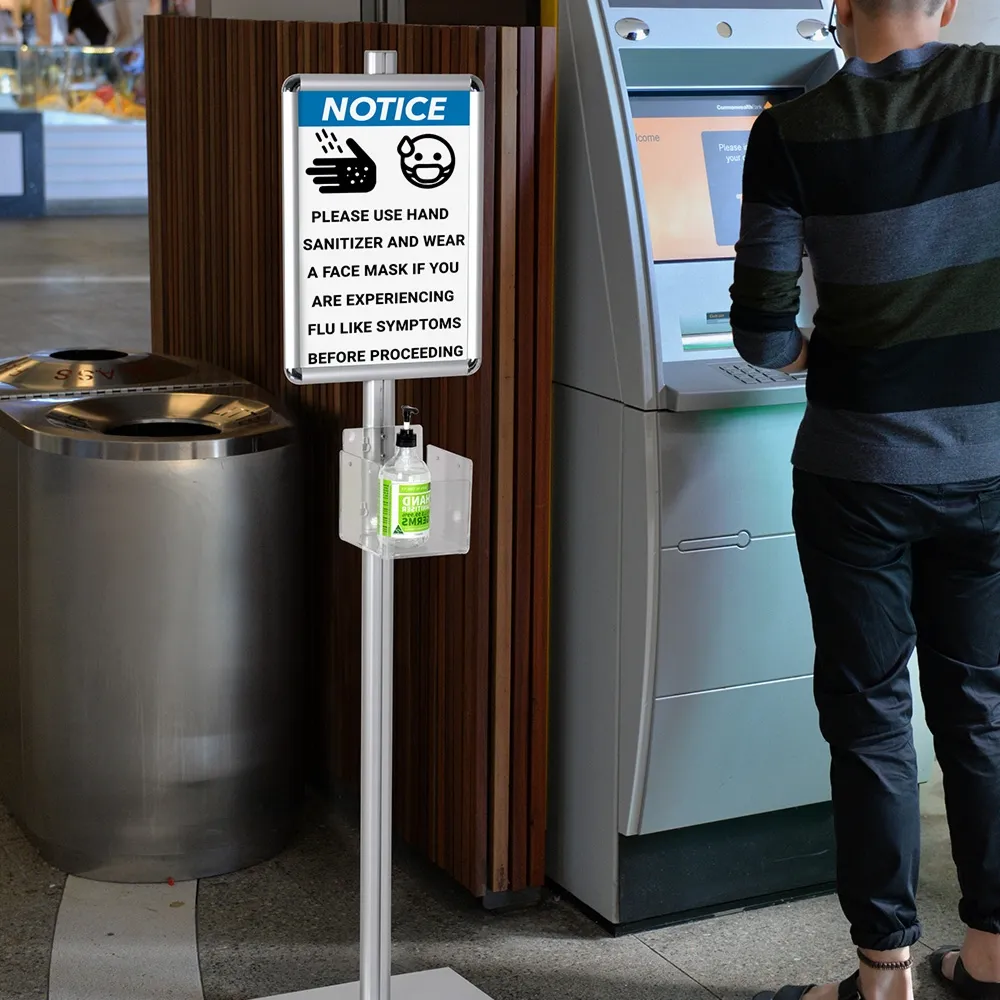 - Floor stand hand sanitizer dispenser has A3 (420 x 297mm) poster clip frame