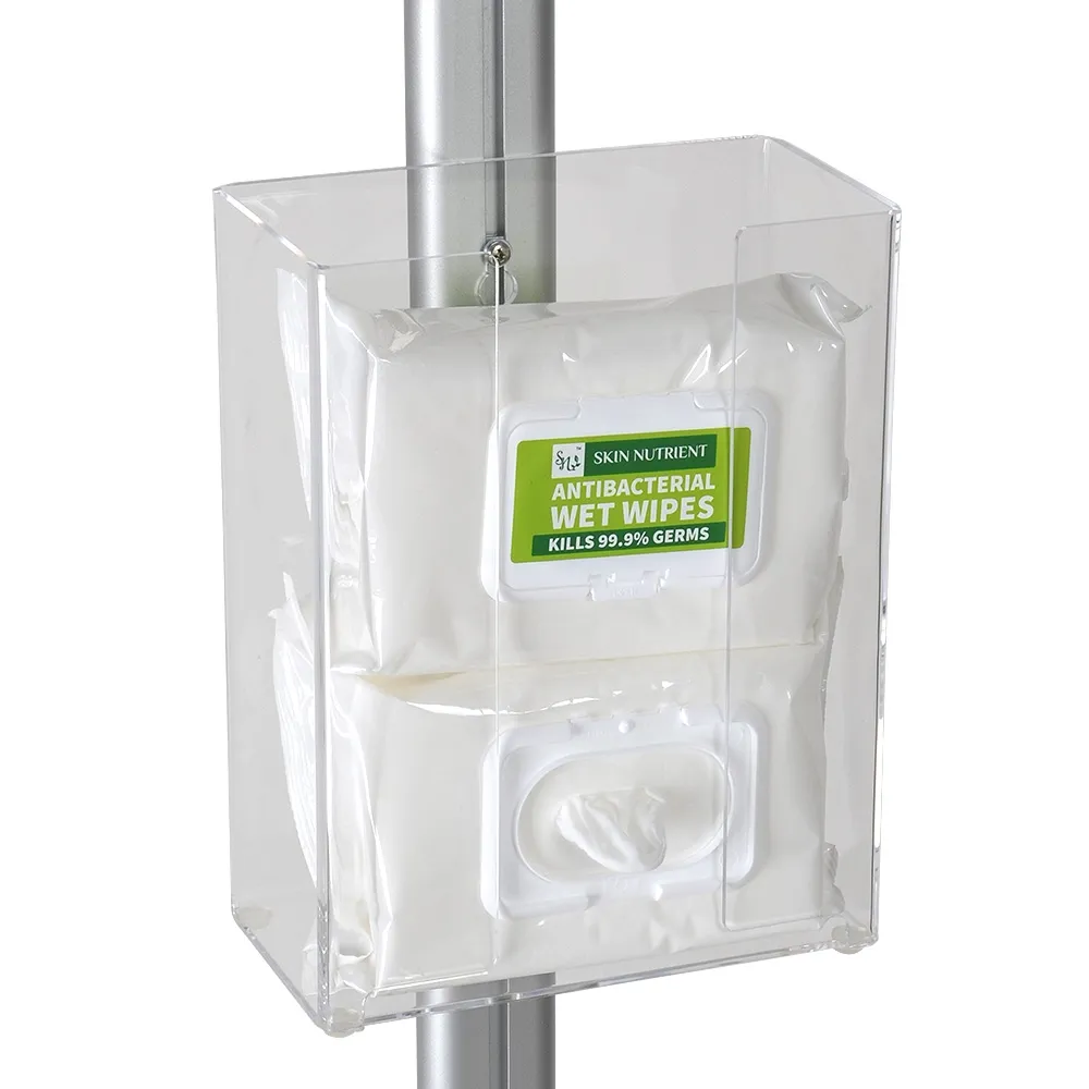 - Acrylic container designed for anti-bacterial wipes or standard disposable face masks
