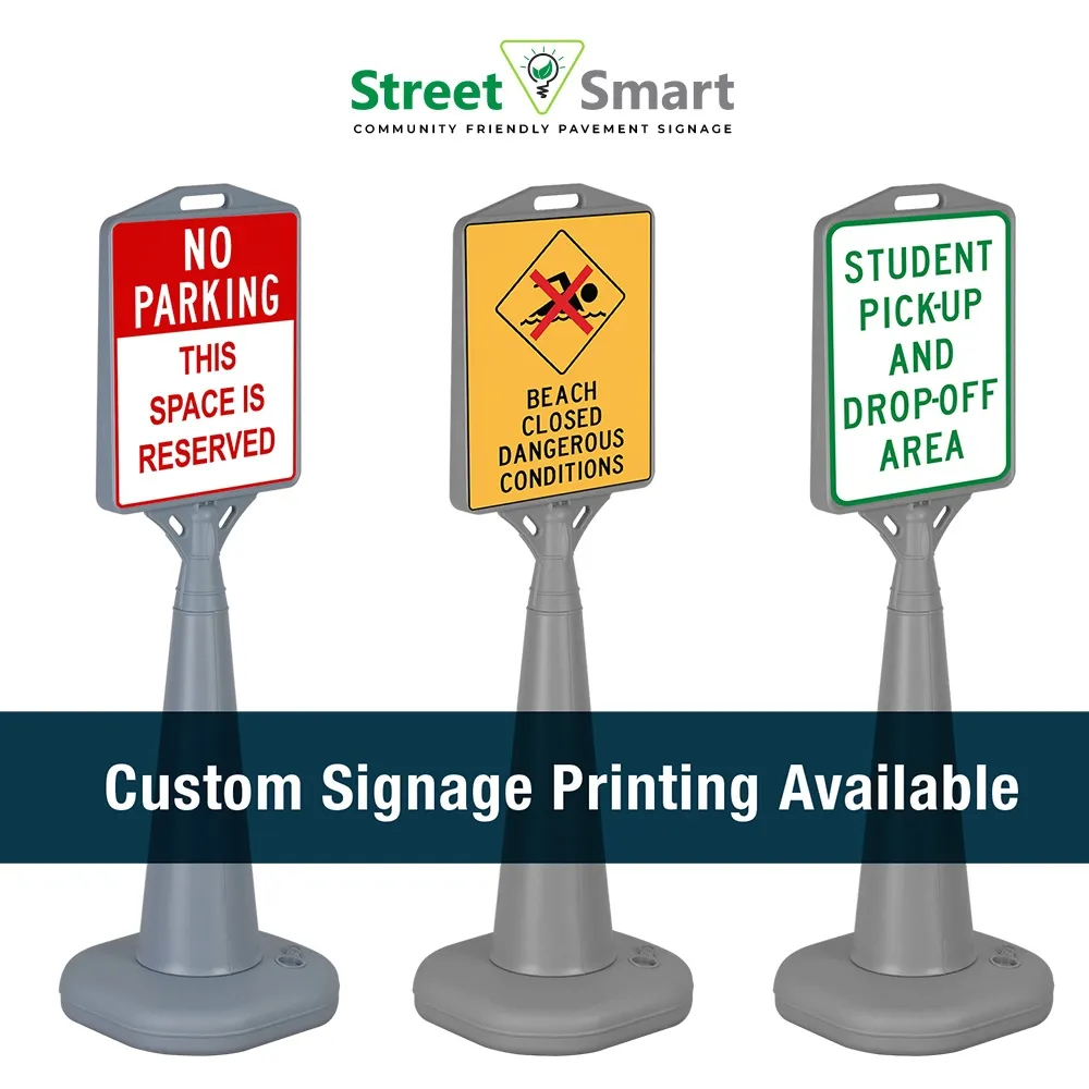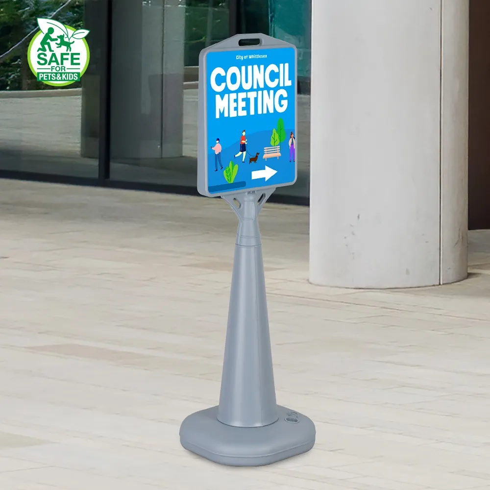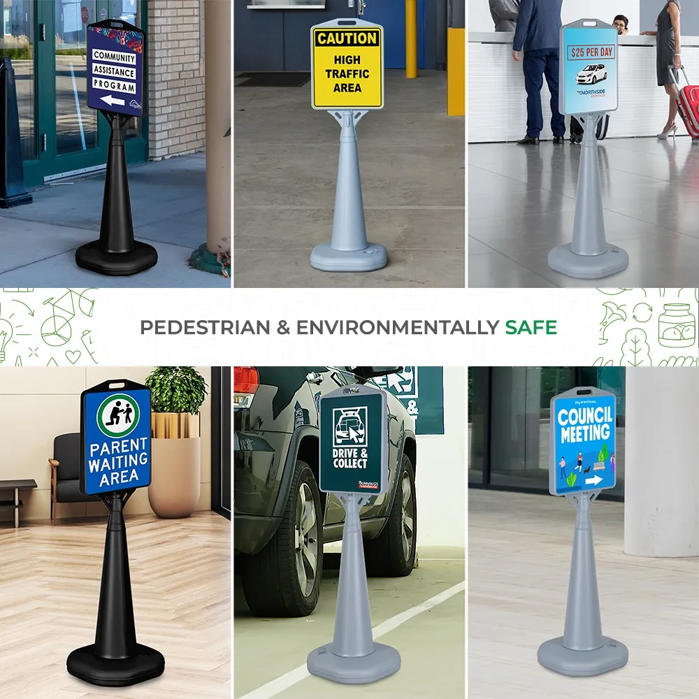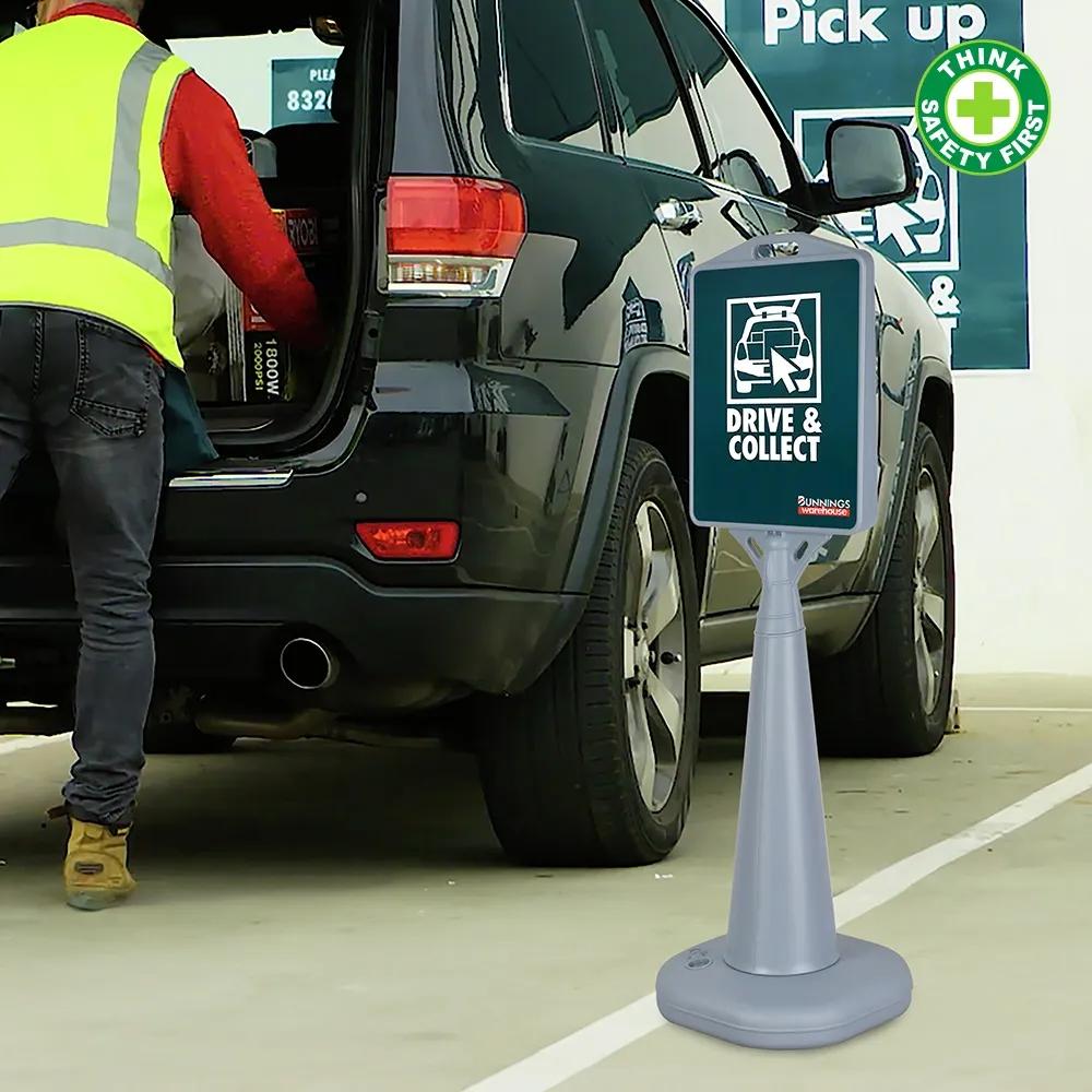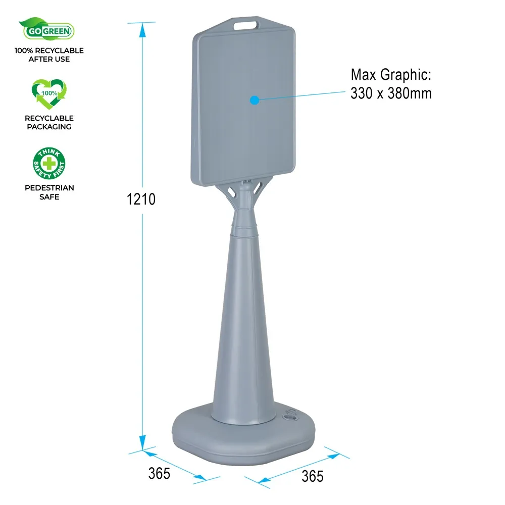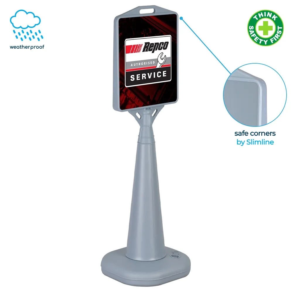 - Outdoor cone sign includes 330 x 380mm custom printed signage