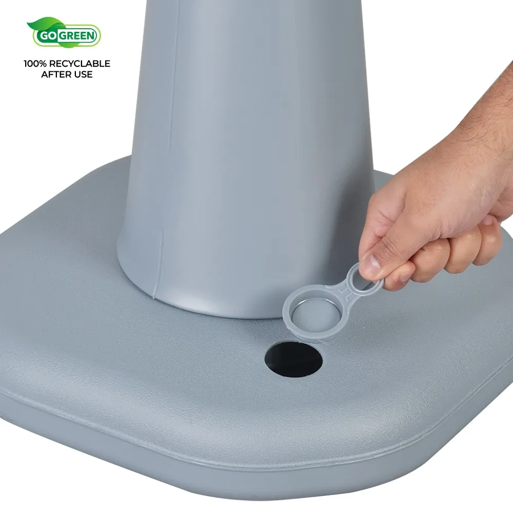 The 2-sided free standing sign has a ballast base that can be filled with water, with the added weight helping to prevent it from being knocked over. The portable display has a moulded carry handle at the top to make it easy to move into position.