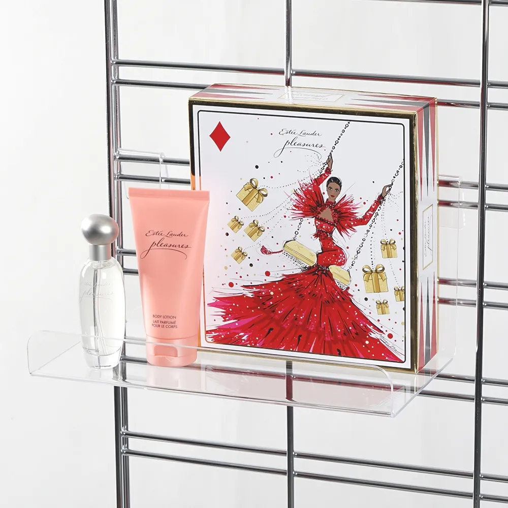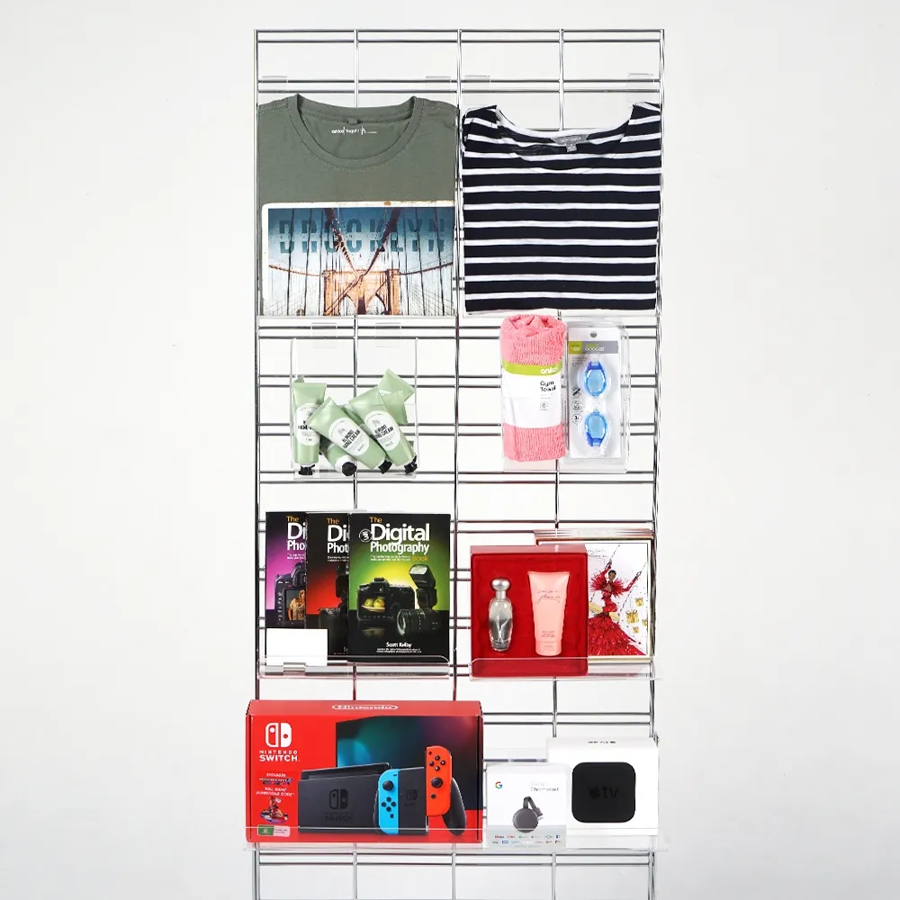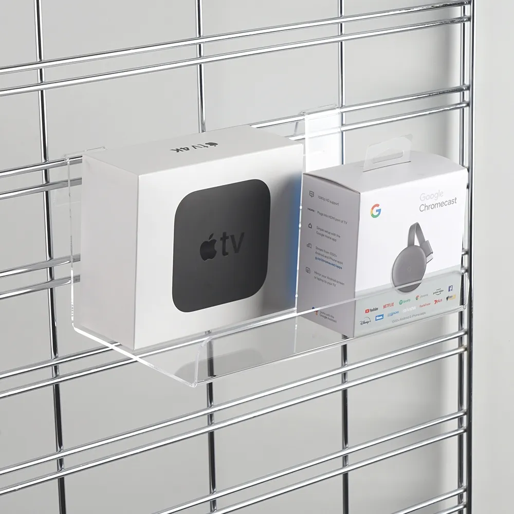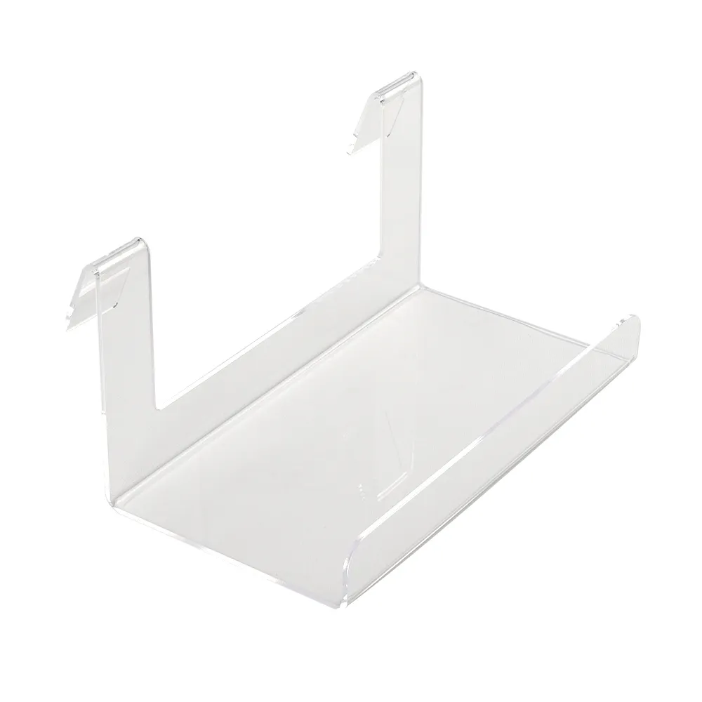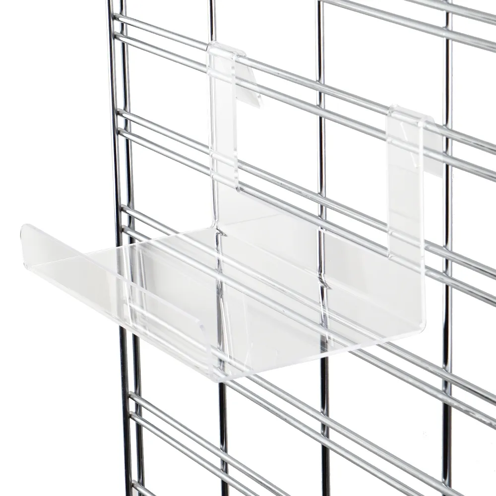 A grid wall shelf, like many retail store fixtures, is made from clear acrylic with polished edges to be affordable whilst providing a stylish display that fits in with any décor style. The 3mm thick unit offers a full view from every side so potential customers know exactly what they are looking at. The clear shelving has a 38mm high raised lip in the front as well that keep items from slipping off and safely in place. There are (2) hooks on the back that have a 240mm gap in between them, fitting onto the grid wall and ensuring a stable unit. Slimline Warehouse has same day shipping provided with this and most other in stock products if purchased by 3pm EST. Buy online today for quick dispatch to your location anywhere in Australia!