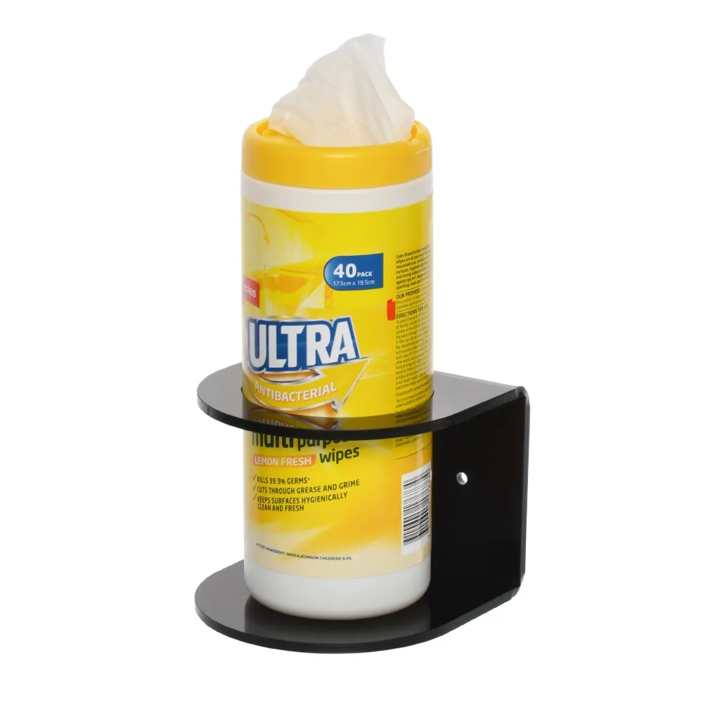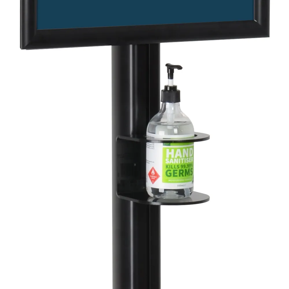 - Sanitizer bottle holder designed to provide wipes or hand sanitiser to visitors