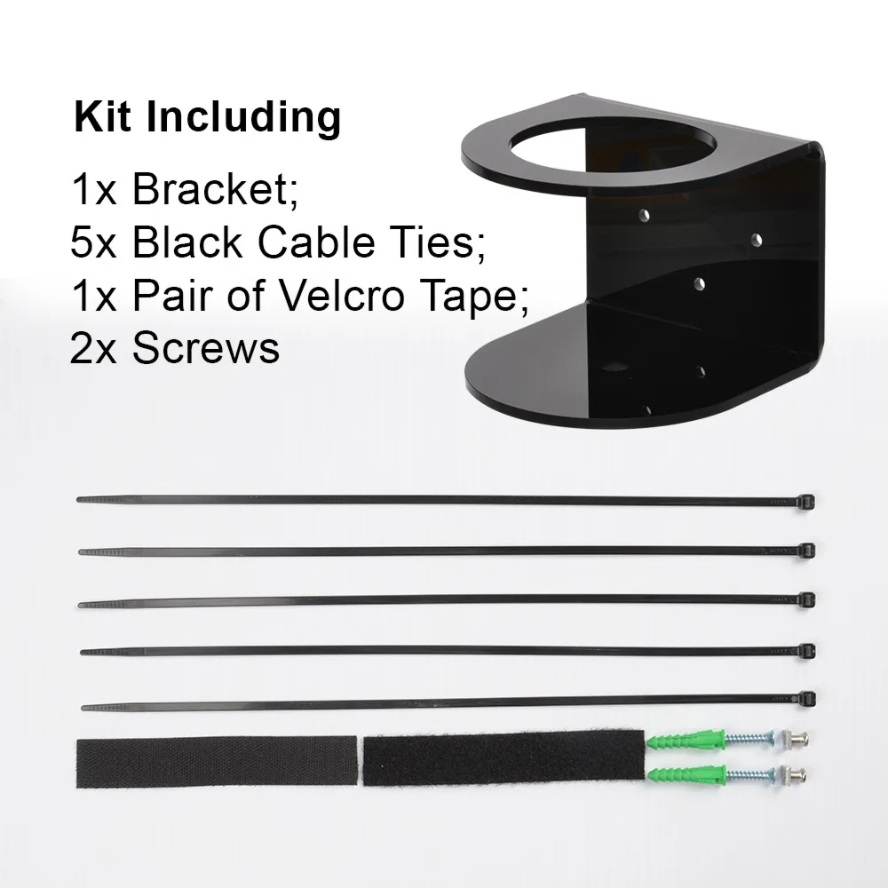 | Kit Includes | 1x Acrylic Bottle Holder; 5x Black Cable Ties; 1x Pair of Velcro Tape; 2x Screws for Wall Mounted |