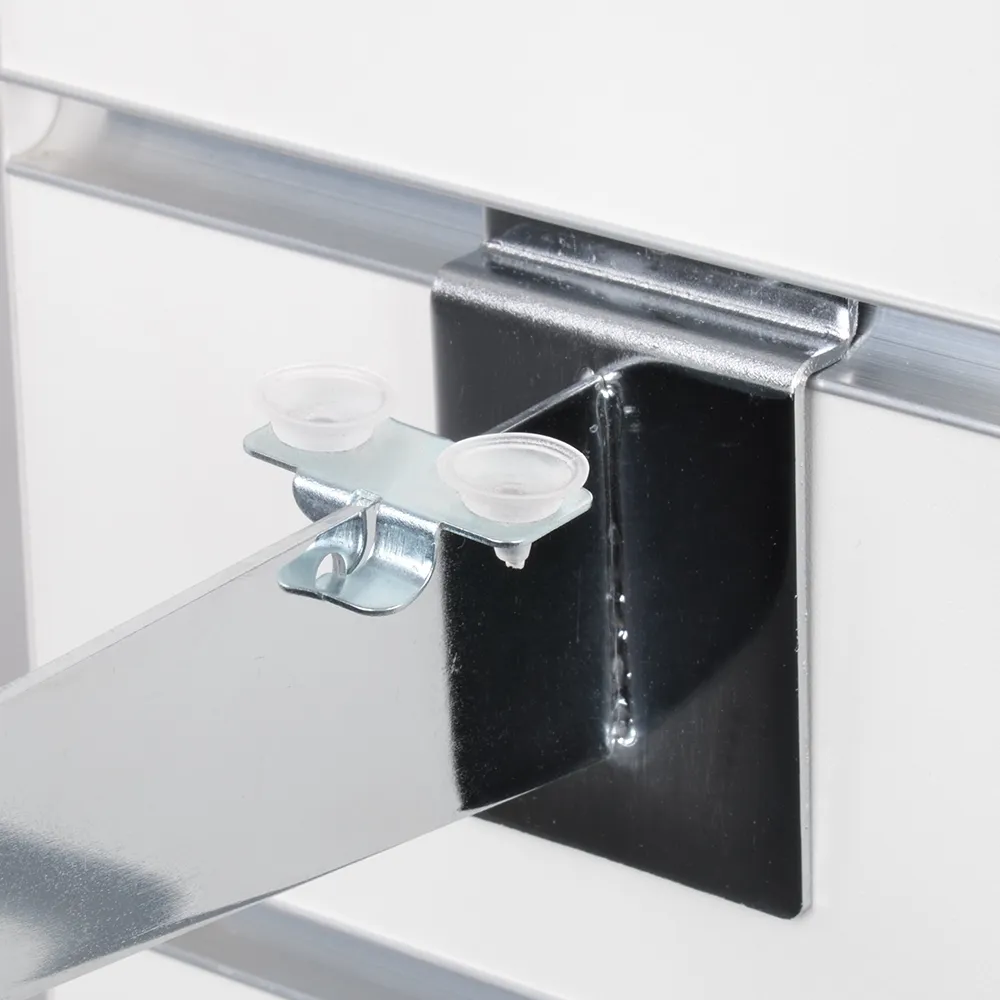- Slat wall bracket suction cups secure shelving to mounts