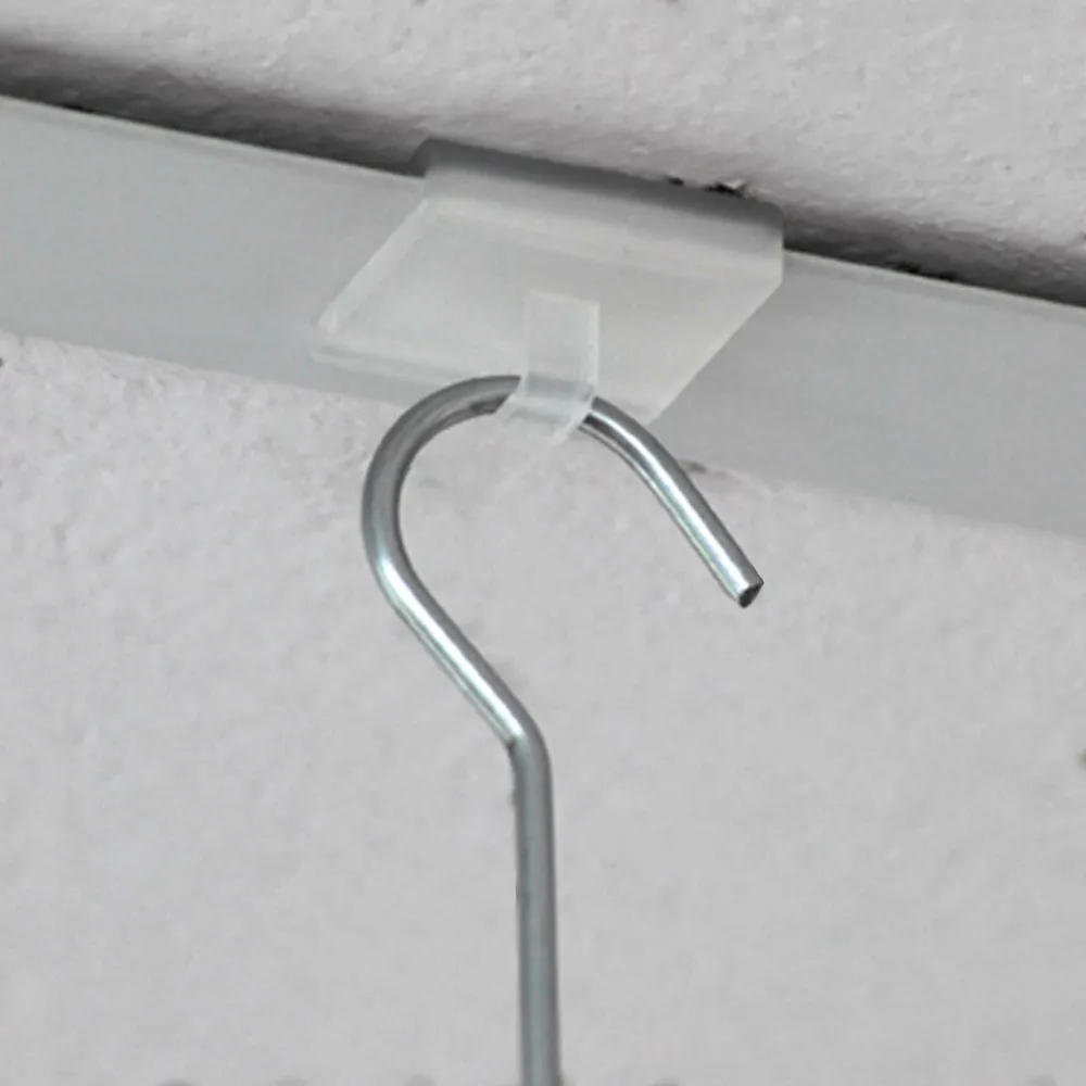 The plastic hanging clip makes displaying graphics from drop down ceilings an easy task. The poster hooks systems are used in many locations, such as retail stores, arcades, malls, universities, offices, and other similar locations for displaying graphics from the ceiling. A set of 10 clips is included with each purchase!