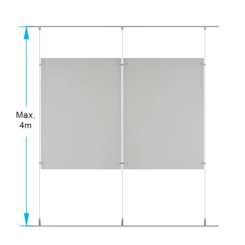 The hanging rail system, like cable window displays, are easy to install using the included hardware kit to slide cable fittings into place on the (4) 1m aluminium rails instead of having to individually install each one. There are (3) 4m long cables included that can be cut to size to fit more floor to ceiling spans, with a minimum 1282 x 840mm area needed to fit the entire 1 x 2 array. The standoffs and joiners use an edge grip to secure each frame to the wire or each other. Slimline Warehouse has same day shipping available with this and most other in stock products if purchased by 3pm EST, buy online for fast dispatch Australia-wide today!