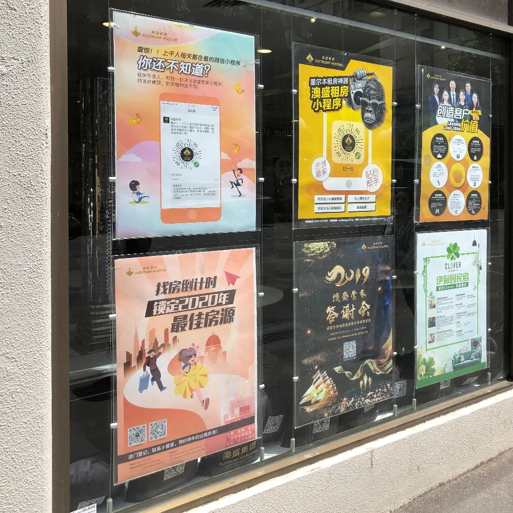 - Dual-sided acrylic sign holders offer viewing in multiple directions