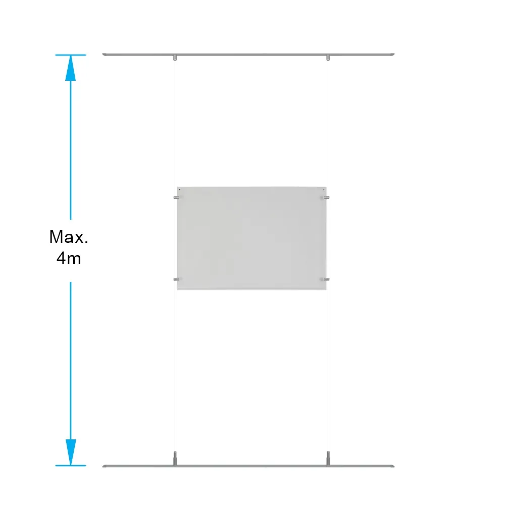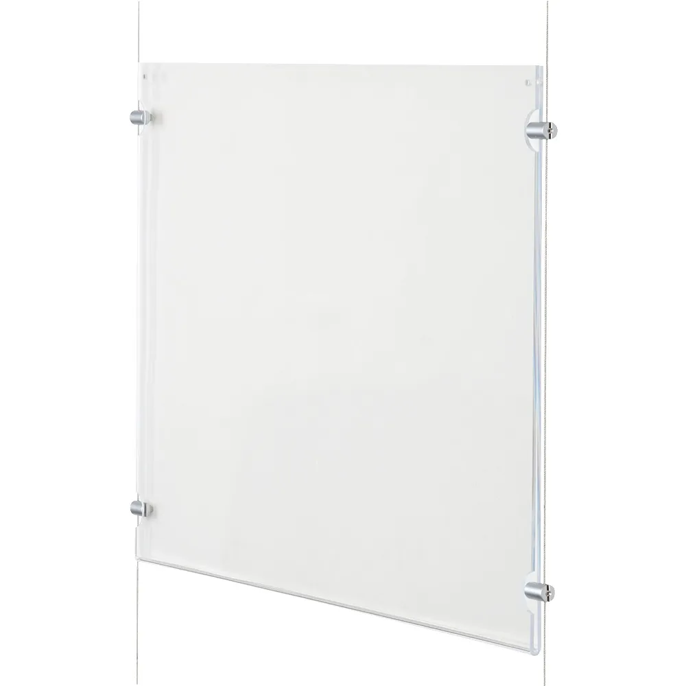 These A2 cable display systems, estate agent window displays offer many options to suit different needs of businesses, with different configurations available including more sizes of poster size options! This kit has a single clear acrylic pocket designed to hold A2 (420 x 594mm) signage that is in landscape format. Each holder is dual-sided, making these displays perfect for storefront use as they are able to be visible in multiple directions inside and outside of your business. The 3mm thick poster pockets use embedded magnets to remain closed, with a slide-in design that makes changing signs out quick and easy, no tools necessary!