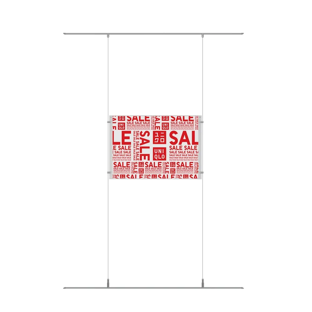 The estate agent window displays are popularly used at real estate agencies, information centres, retail stores, museums, shopping centres, exhibition halls, and more! These cable hanging systems feature a new and improved design to make installing and positioning signage easier than ever. A 1m aluminium rail above and below the pockets has cables slid down into position and then hand tightened to be taut, allowing pockets to "float" in the air for an eye-catching effect. The cables are each 4m long, and can be cut to length to make this display usable in nearly any location!
