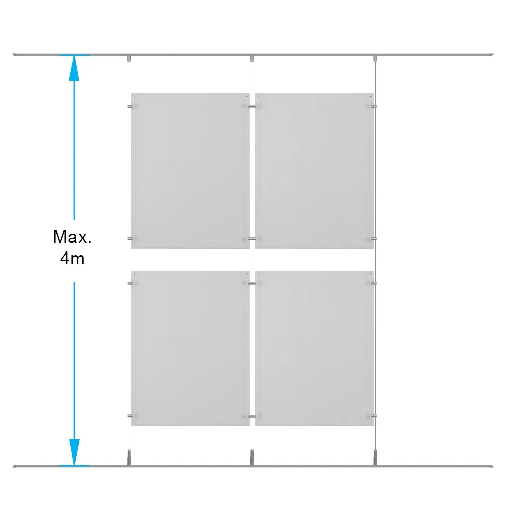 An estate agent window display, like cable poster systems, is easy to install using the (2) 1m long aluminium rails along the floor and ceiling to slide cables into position, unlike other models that require each cable fitting to be individually installed. There are (3) 4m long cables included that easily fit most floor to ceiling spans and can be cut to size to fit your needs, with the entire array needing a minimum 932 x 818mm area. Stainless steel standoffs and joiners connect the frame to the wires and each other securely. Order by 3pm AEST for same day shipping to anywhere in Australia with this and most other in stock products, only from Slimline Warehouse!