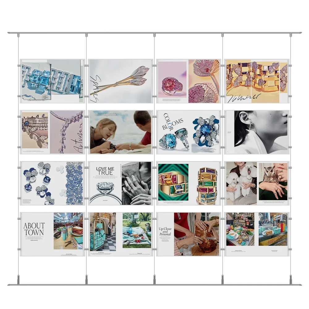 - Cut steel cables to needed size to easily hang poster holders between rails
