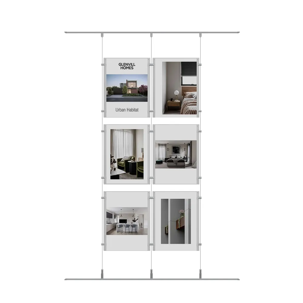 The window display real estate, like hanging cable signs, create a floating effect by suspending the wires between the floor and ceiling using wires. There are (3) 4m long cables included that can all be cut to size to accommodate your needs, with (2) 1m long rails included that let the top and bottom fittings be slide into position easily. There are joiners and standoffs that use an edge grip to secure the frames to the wires and each other securely, all with a silver finish that nicely complements the clear poster holders. Slimline Warehouse has same day shipping available with this and most other in stock products if purchased by 3pm AEST to anywhere in Australia, buy online today for fast dispatch to you!