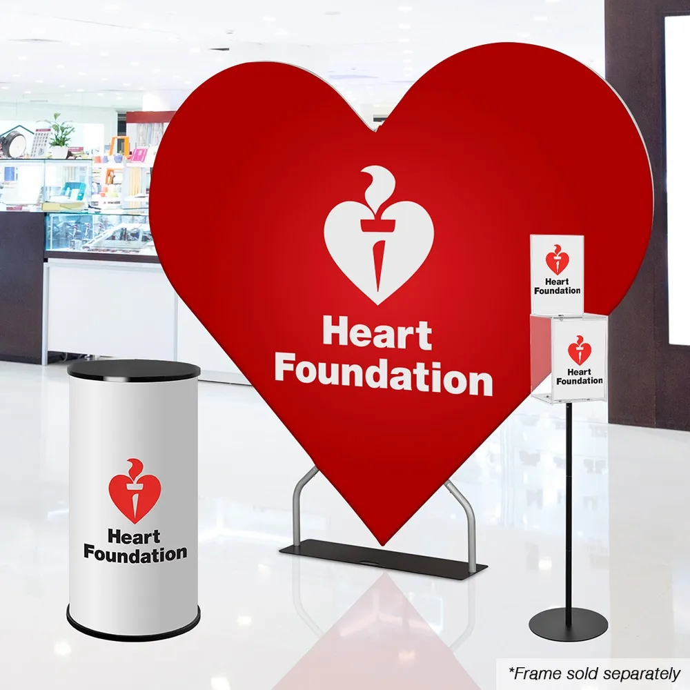 Purchase an additional fabric wrap for your pop up stand to display updated information and customise graphics for different events! This wrap is designed for the HSAPRTSSKIT1, heart-shaped popup exhibition frame. Your designs are digitally printed using a dye-sublimation process that provides a true to design depiction in vivid colours with rich imagery that is sure to turn heads at any location. Printing is done on both sides to maximise visual impact, offering visibility in multiple directions at once. The polyester wrap is made from stretch fabric that clings to the frame for a great look and is machine washable for cleaning in between uses. Use the zipper to seal this wrap around the frame without needing any tools! A printed popup frame is great for use in photoshoot backdrops, in booths at trade shows, in welcome centres of hotels, casinos, information centres, and so much more. Order online today for fast shipping to anywhere in Australia, only from Slimline Warehouse!