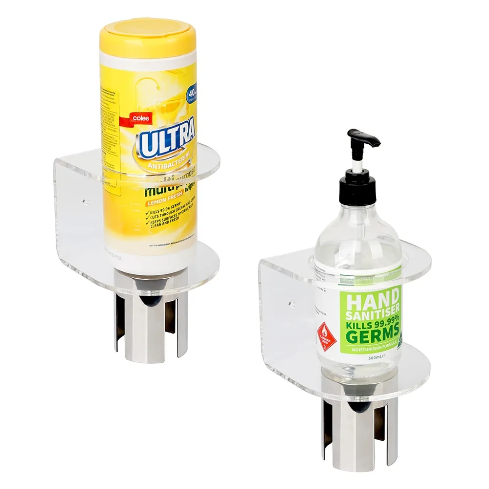 - Designed for 250 or 500ml sanitising gel bottles or wipes up to 85mm in diameter